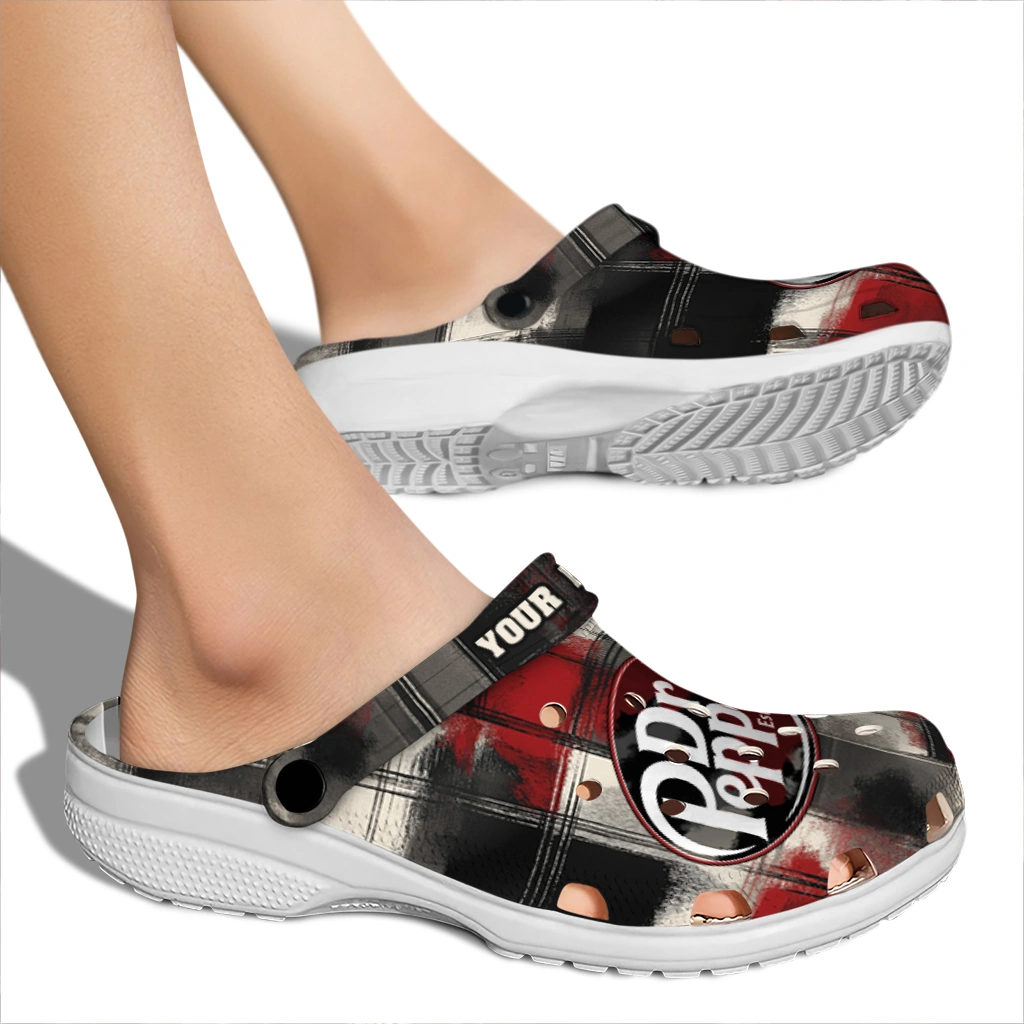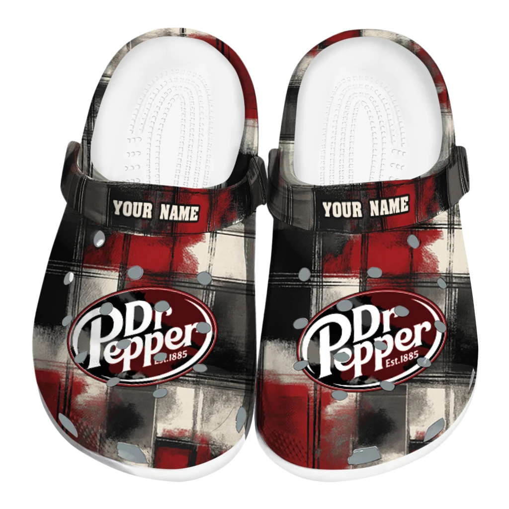 Custom Dr Pepper Logo Plaid Red Black Clogs