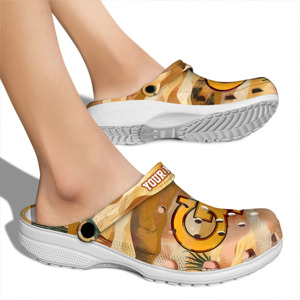 Your Clogs, Your Vibe, Your Name! Custom Georgia Tech Yellow Jackets Desert Layers Clogs from Hey Clogs lets you take sport team-inspired style to a personal level! Featuring the bold colors you love, these featherlight clogs deliver unbeatable, all-day comfort. What a great way to make them truly yours: add your name to the heel strap! Perfect for gifting or treating yourself, these personalized clogs are a fun, spirited way to step out in comfort.