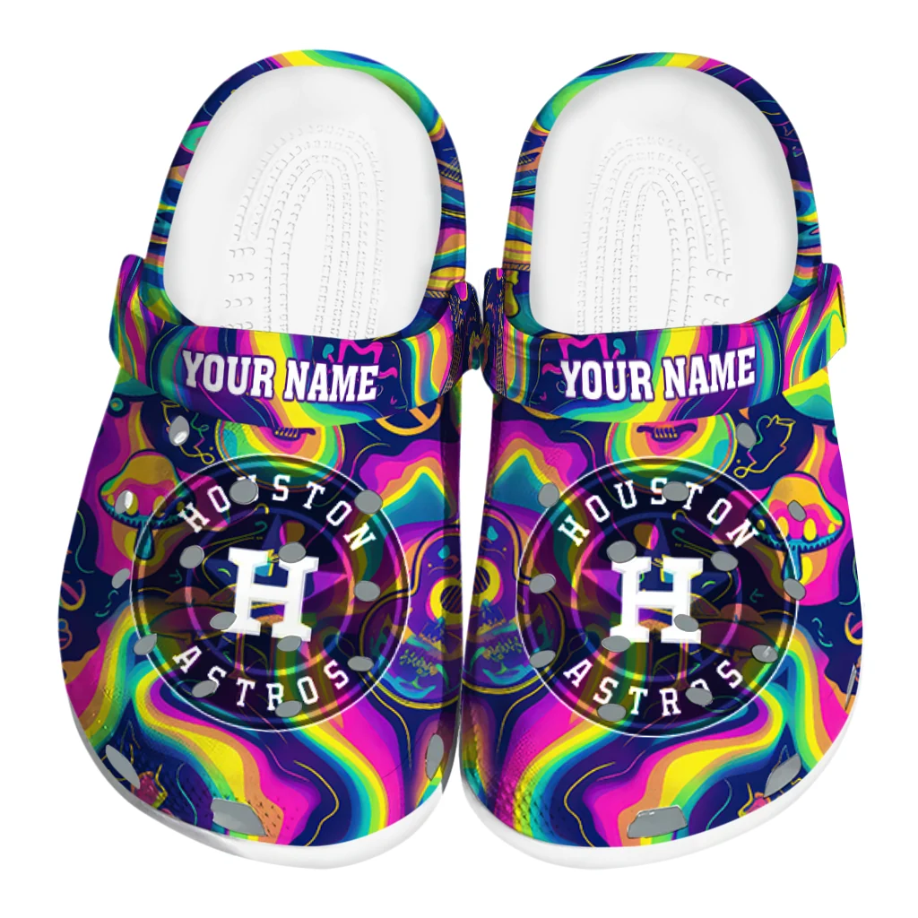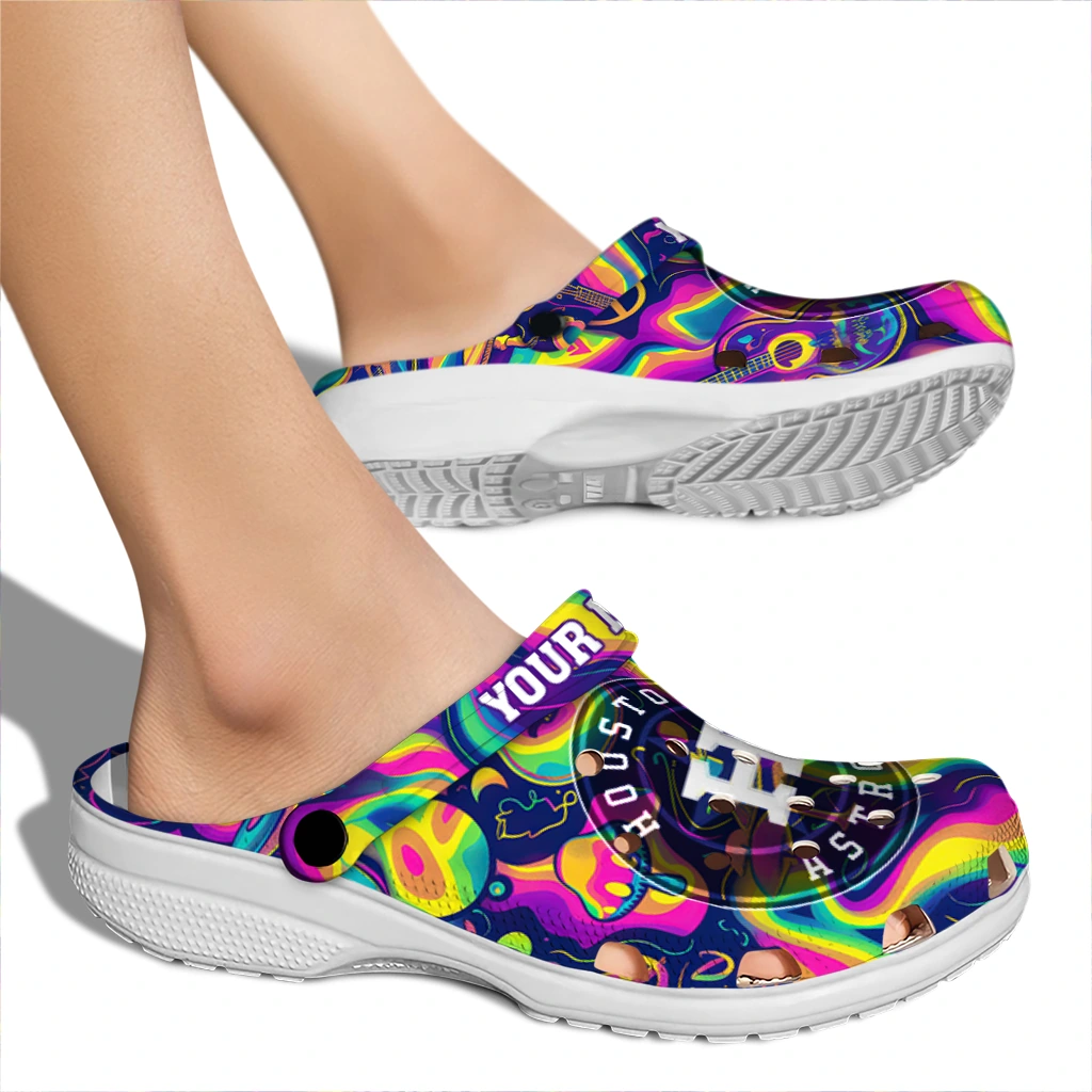 Your Clogs, Your Vibe, Your Name! Custom Houston Astros Swirling Mushrooms Clogs from Hey Clogs lets you take sport team-inspired style to a personal level! Featuring the bold colors you love, these featherlight clogs deliver unbeatable, all-day comfort. What a great way to make them truly yours: add your name to the heel strap! Perfect for gifting or treating yourself, these personalized clogs are a fun, spirited way to step out in comfort.