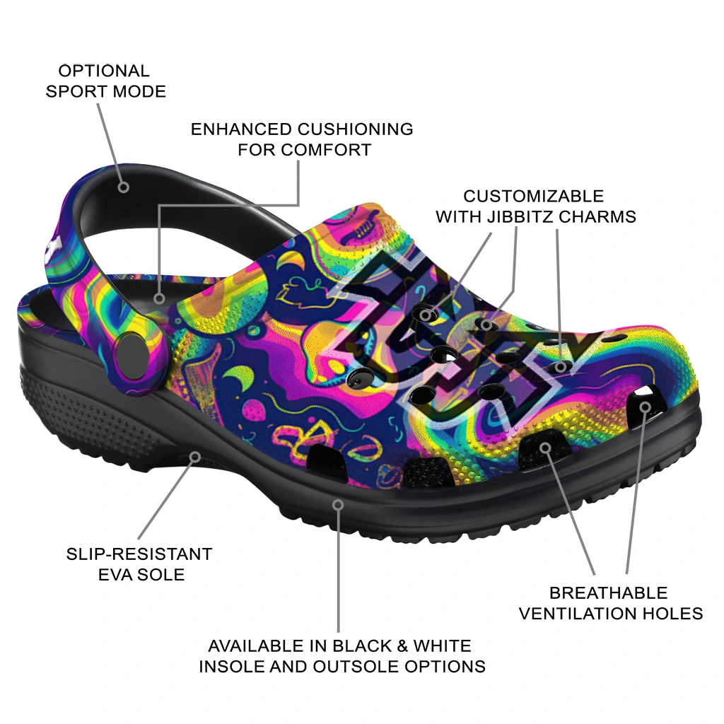 Your Clogs, Your Vibe, Your Name! Custom Kennesaw State Owls Swirling Mushrooms Clogs from Hey Clogs lets you take sport team-inspired style to a personal level! Featuring the bold colors you love, these featherlight clogs deliver unbeatable, all-day comfort. What a great way to make them truly yours: add your name to the heel strap! Perfect for gifting or treating yourself, these personalized clogs are a fun, spirited way to step out in comfort.