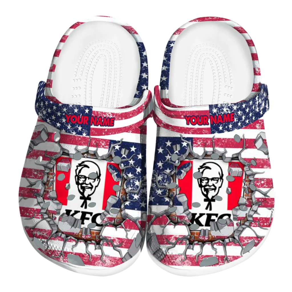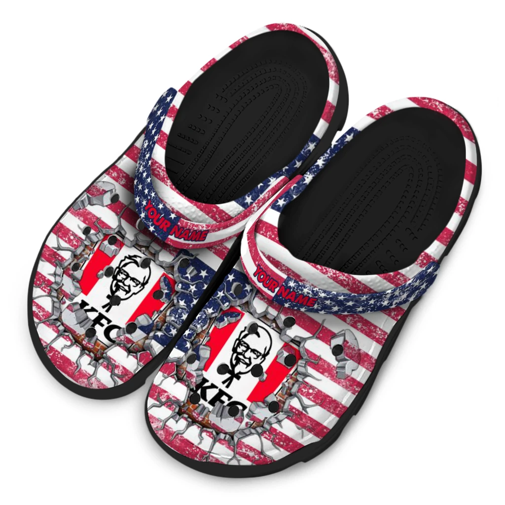 Can’t take your eyes off the Custom KFC Patriot Split Red Blue Clogs? We get it. This pair mixes sun-bright prints with cloud-soft comfort in a silhouette that’s effortless to style and even easier to wear. Crafted from premium EVA, it’s ultra-light yet supportive, quick to dry after splashy moments, and steady underfoot thanks to an anti-slip sole.