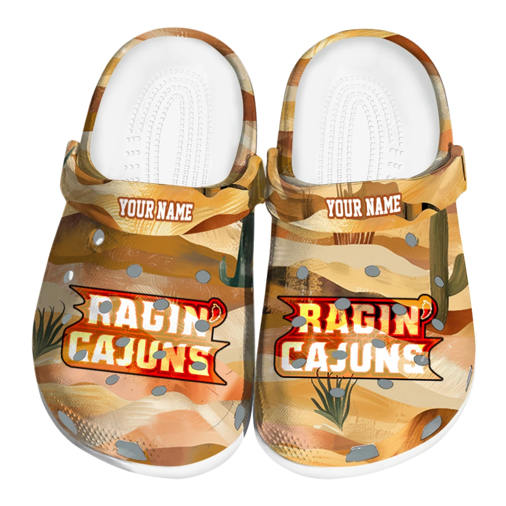 Comfort and Customization – What a Perfect Combination! Want footwear that stands out in the crowd? You found it! The Custom Fan Spirit Clogs – Custom Louisiana Ragin’ Cajuns Desert Layers Clogs blend the fantastic comfort of lightweight EVA with a design inspired by the biggest sports teams. They’re durable, supportive, and so easy to wear!