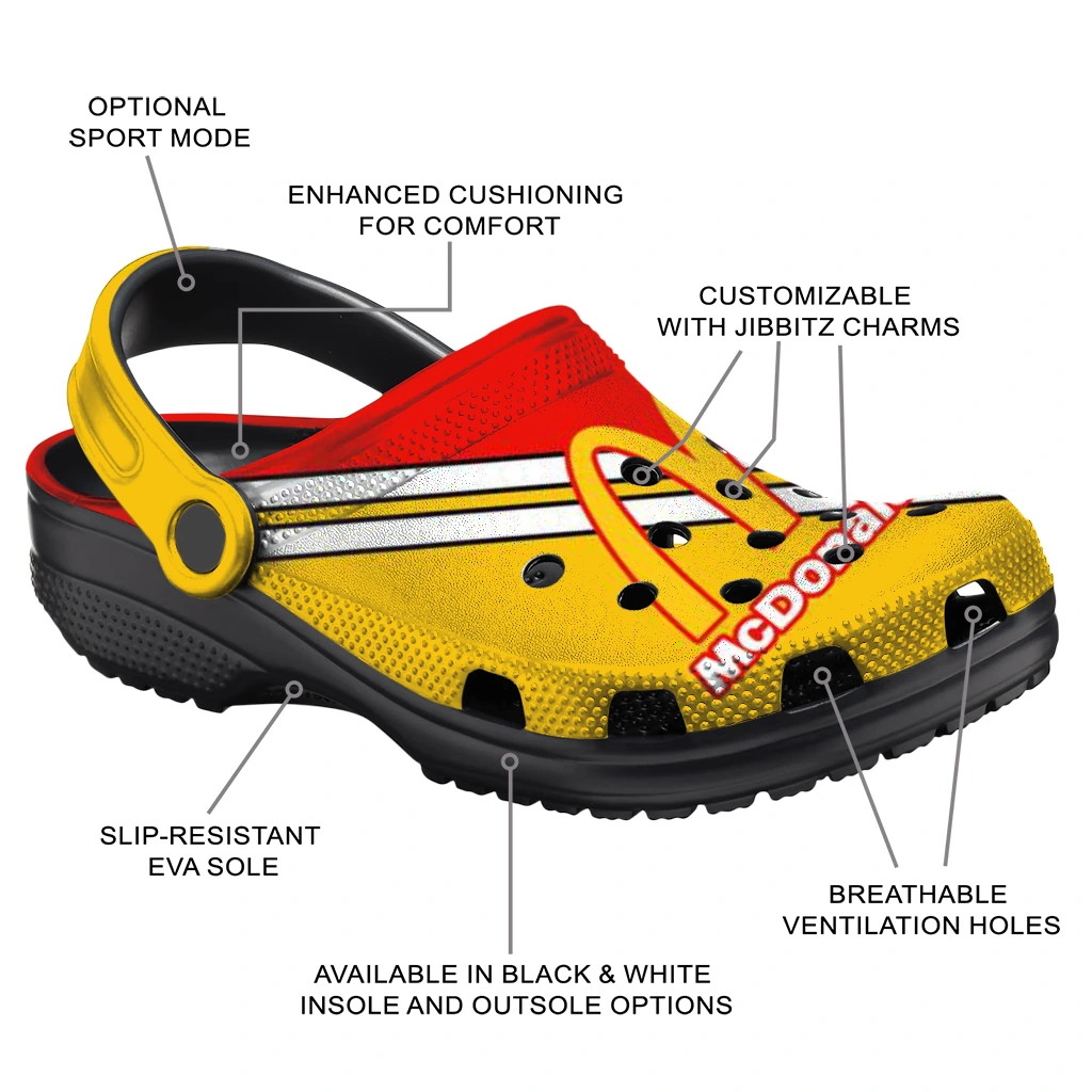 Custom McDonald’s Brand Style Red Yellow Clogs