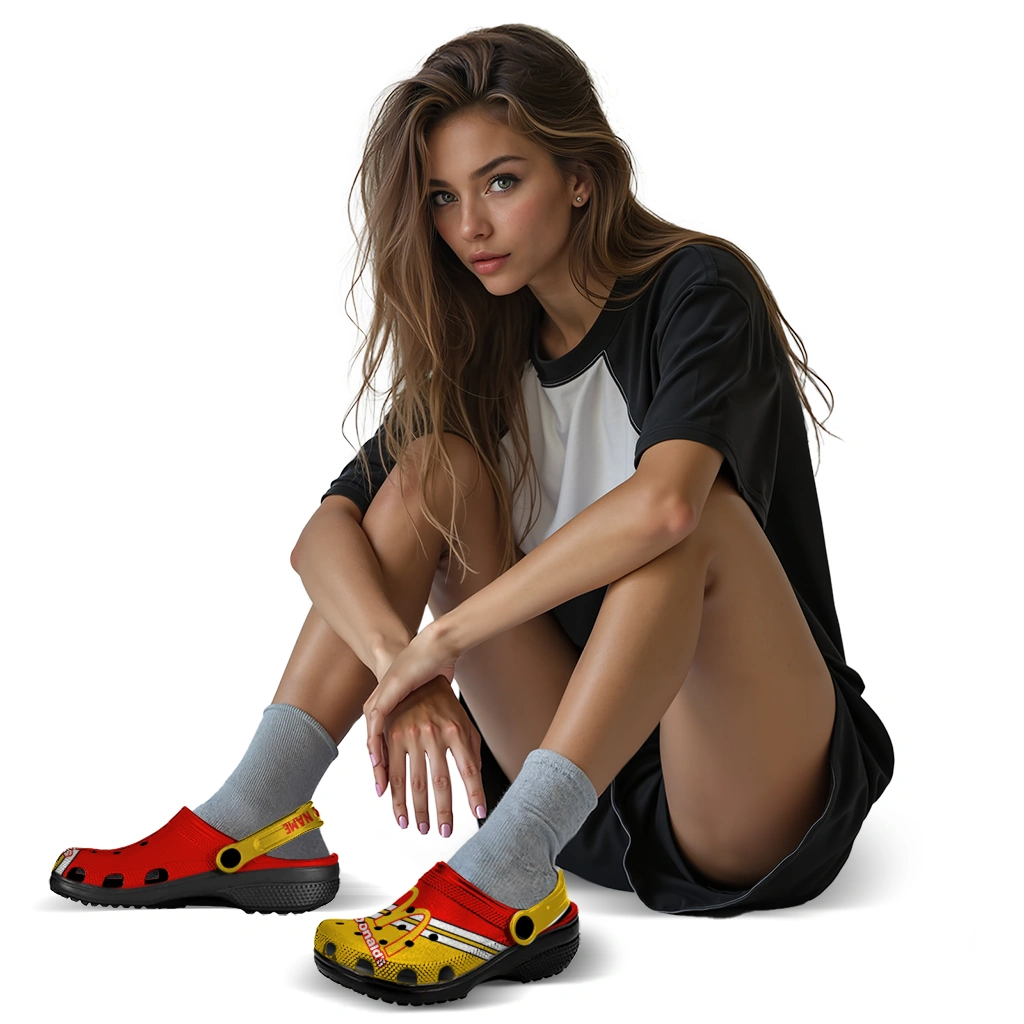 The Custom McDonald’s Brand Style Red Yellow Clogs from Hey Clogs slips on in seconds and keeps pace with your day – from slow mornings at home to city strolls and weekend getaways. Thoughtful design meets playful style with cheerful colors and prints that pop, adding personality to every step while delivering easy, breezy comfort and lightweight support wherever you wander. Want a signature touch? Customize yours with a name or initials for a one-of-one pair.