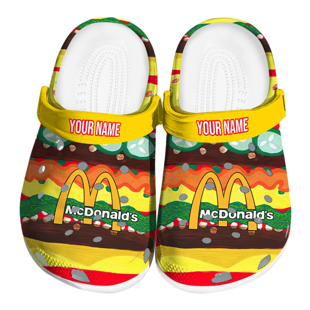 Custom McDonald’s Burger Name Red Yellow Clogs