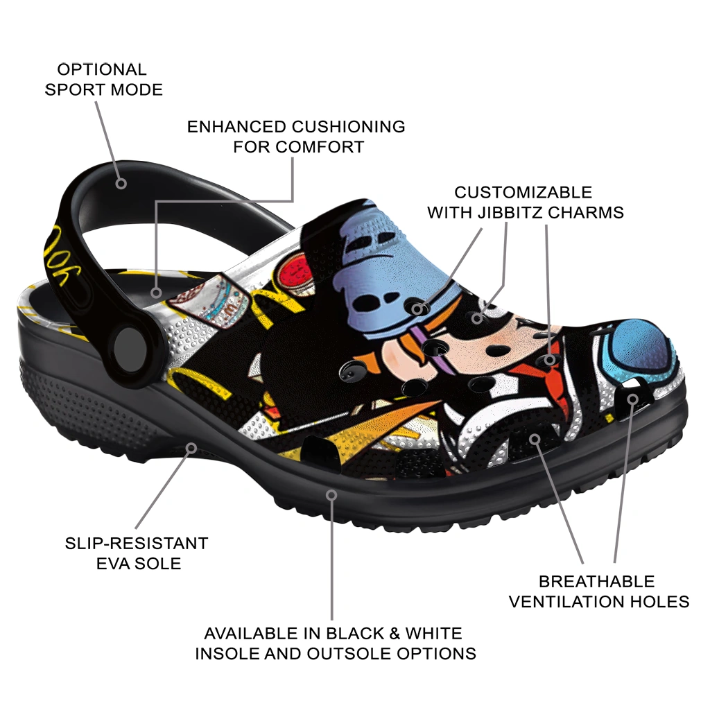 The Customized McDonald’s Masked Trio Red Black Clogs from Hey Clogs slips on in seconds and keeps pace with your day – from slow mornings at home to city strolls and weekend getaways. Thoughtful design meets playful style with cheerful colors and prints that pop, adding personality to every step while delivering easy, breezy comfort and lightweight support wherever you wander. Want a signature touch? Customize yours with a name or initials for a one-of-one pair.
