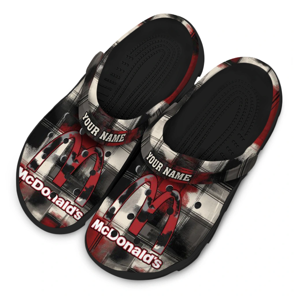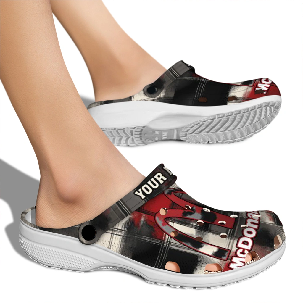 The Custom McDonald’s McDonalds M Black Red Clogs from Hey Clogs slips on in seconds and keeps pace with your day – from slow mornings at home to city strolls and weekend getaways. Thoughtful design meets playful style with cheerful colors and prints that pop, adding personality to every step while delivering easy, breezy comfort and lightweight support wherever you wander. Want a signature touch? Customize yours with a name or initials for a one-of-one pair.