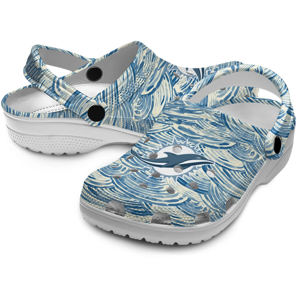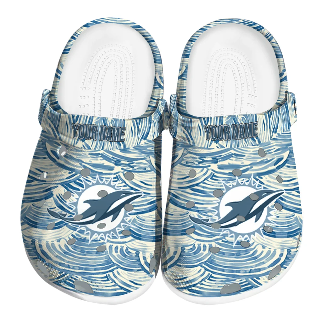 Your Clogs, Your Vibe, Your Name! Custom Miami Dolphins Sea Swirls Clogs from Hey Clogs lets you take sport team-inspired style to a personal level! Featuring the bold colors you love, these featherlight clogs deliver unbeatable, all-day comfort. What a great way to make them truly yours: add your name to the heel strap! Perfect for gifting or treating yourself, these personalized clogs are a fun, spirited way to step out in comfort.