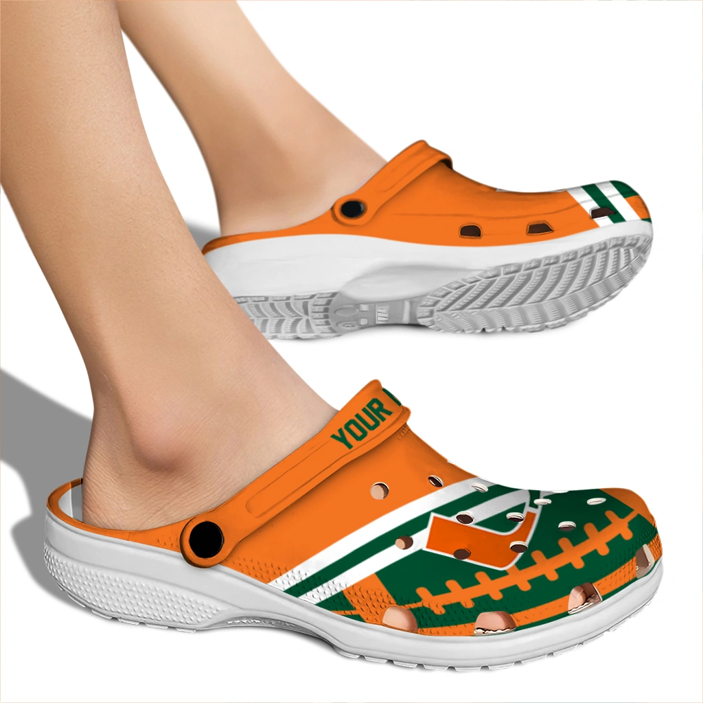 Comfort and Customization – What a Perfect Combination! Want footwear that stands out in the crowd? You found it! The Custom Fan Spirit Clogs – Custom Miami Hurricanes Football Motif Clogs blend the fantastic comfort of lightweight EVA with a design inspired by the biggest sports teams. They’re durable, supportive, and so easy to wear!