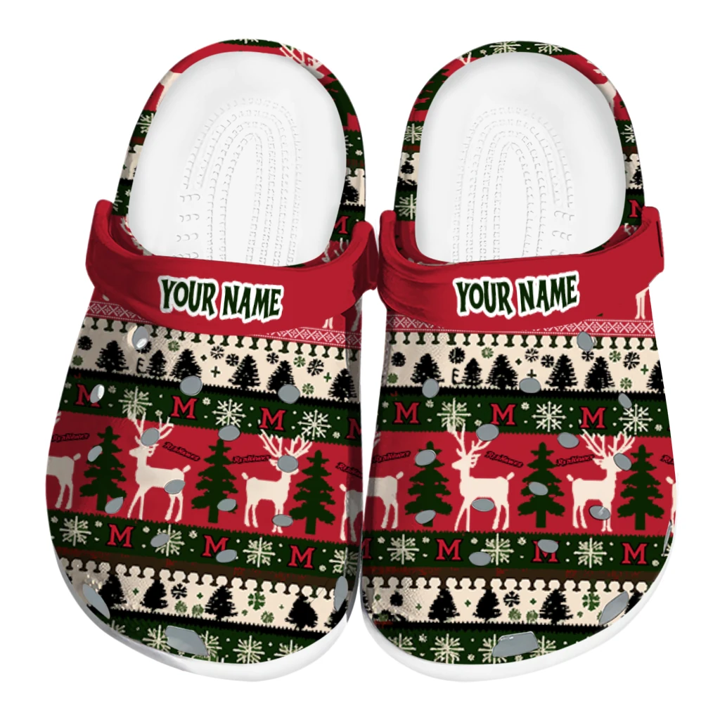 Your Clogs, Your Vibe, Your Name! Custom Miami RedHawks Christmas Motif Clogs from Hey Clogs lets you take sport team-inspired style to a personal level! Featuring the bold colors you love, these featherlight clogs deliver unbeatable, all-day comfort. What a great way to make them truly yours: add your name to the heel strap! Perfect for gifting or treating yourself, these personalized clogs are a fun, spirited way to step out in comfort.