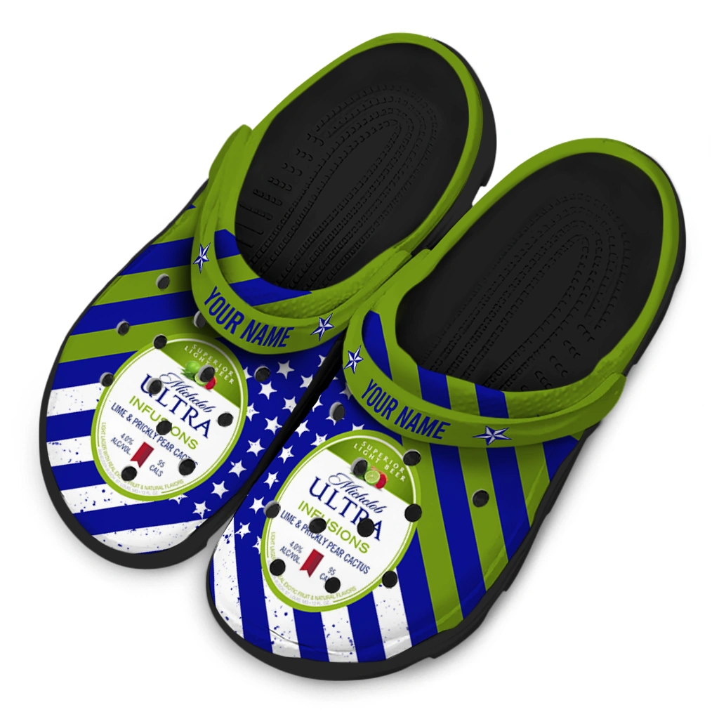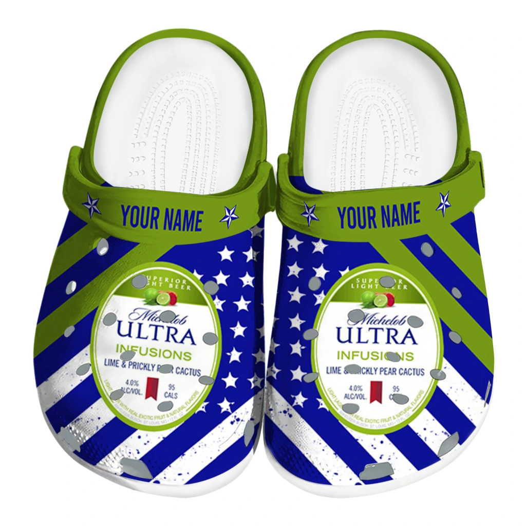 Custom Michelob Ultra Patriotic Pattern Blue Green Clogs