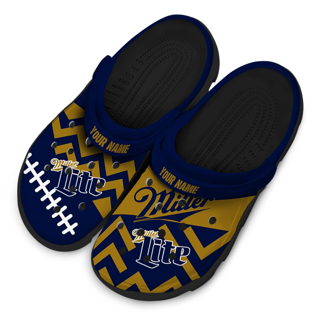 Custom Miller Lite Football Arrows Navy Gold Clogs