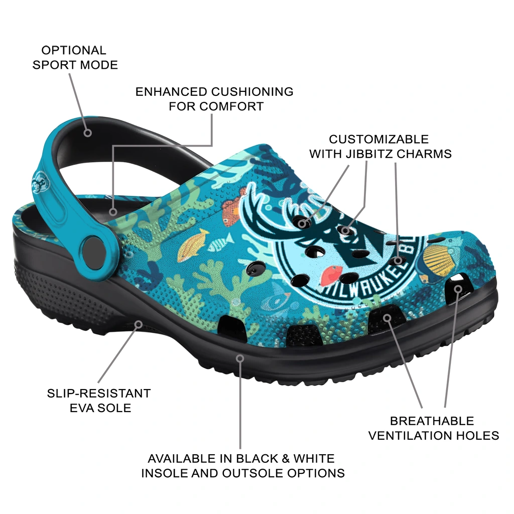 Custom Milwaukee Bucks Tropical Fish Ocean Clogs