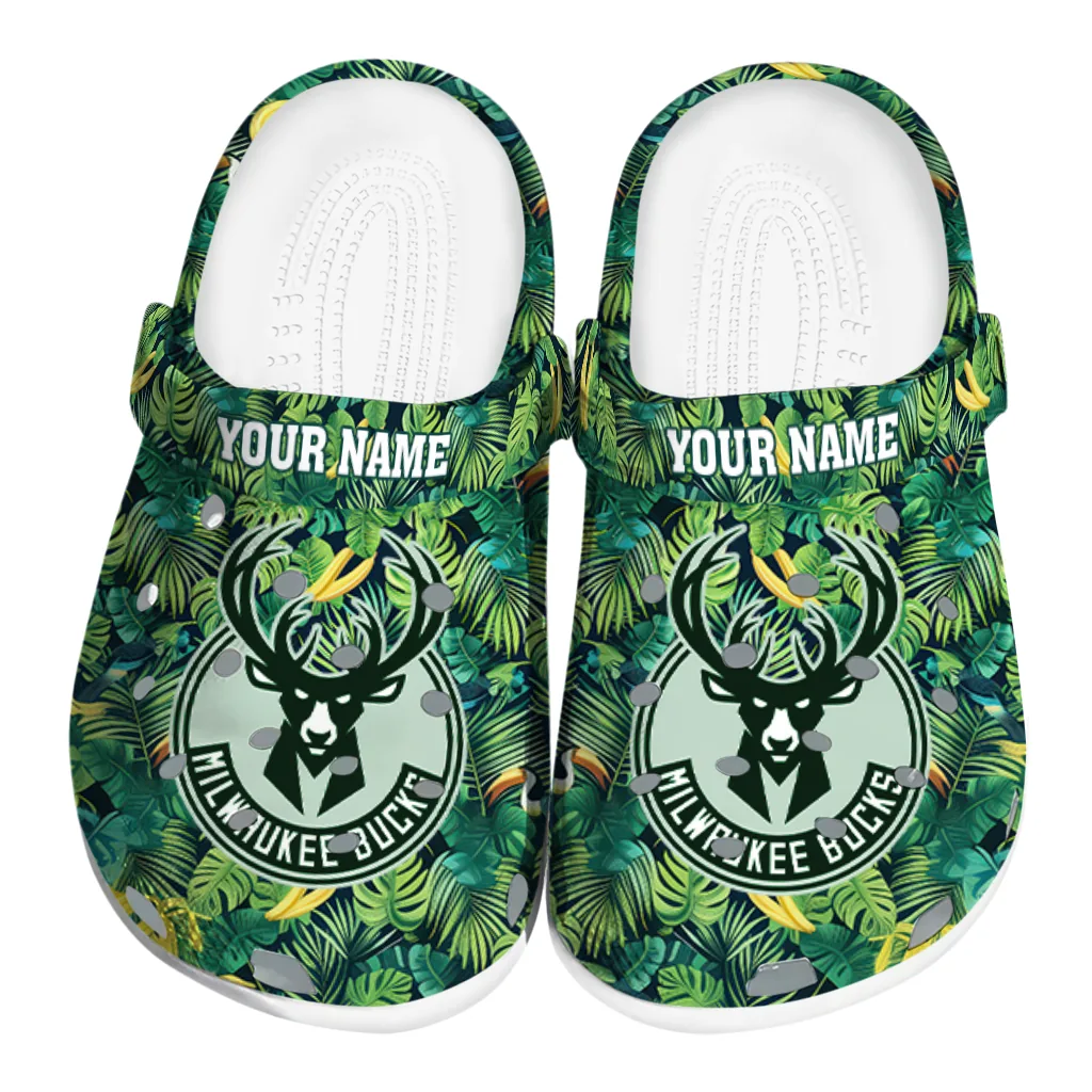 Custom Milwaukee Bucks Tropical Leaves Clogs
