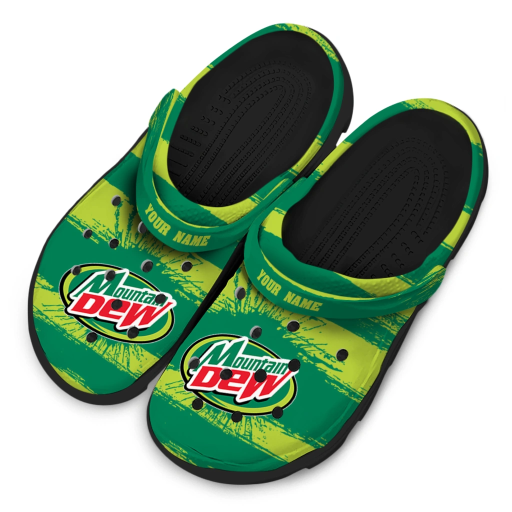 Custom Mountain Dew Center Logo Green Yellow Clogs