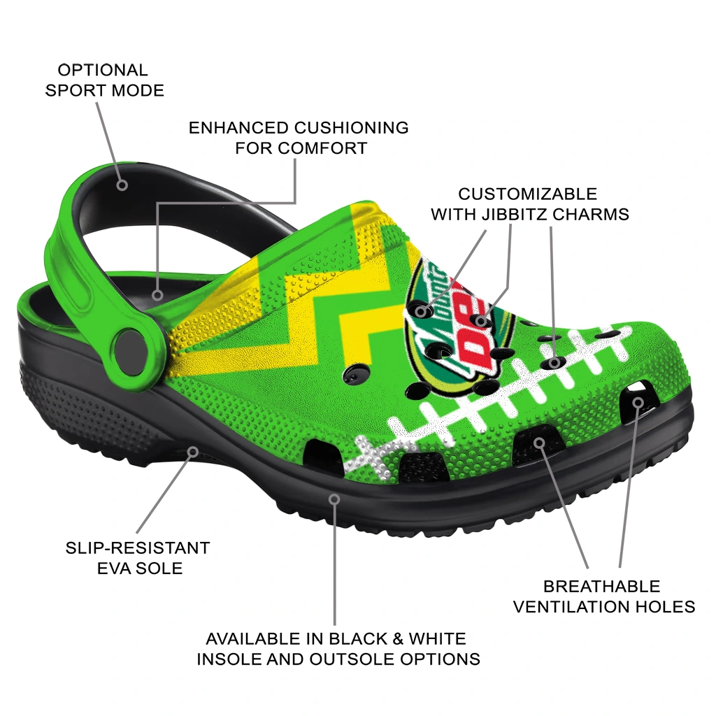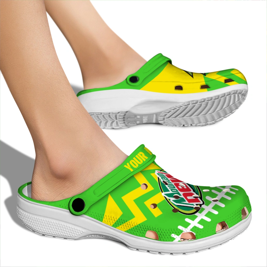 The Custom Mountain Dew Patches Green Yellow Clogs from Hey Clogs slips on in seconds and keeps pace with your day – from slow mornings at home to city strolls and weekend getaways. Thoughtful design meets playful style with cheerful colors and prints that pop, adding personality to every step while delivering easy, breezy comfort and lightweight support wherever you wander. Want a signature touch? Customize yours with a name or initials for a one-of-one pair.