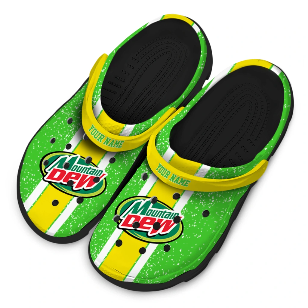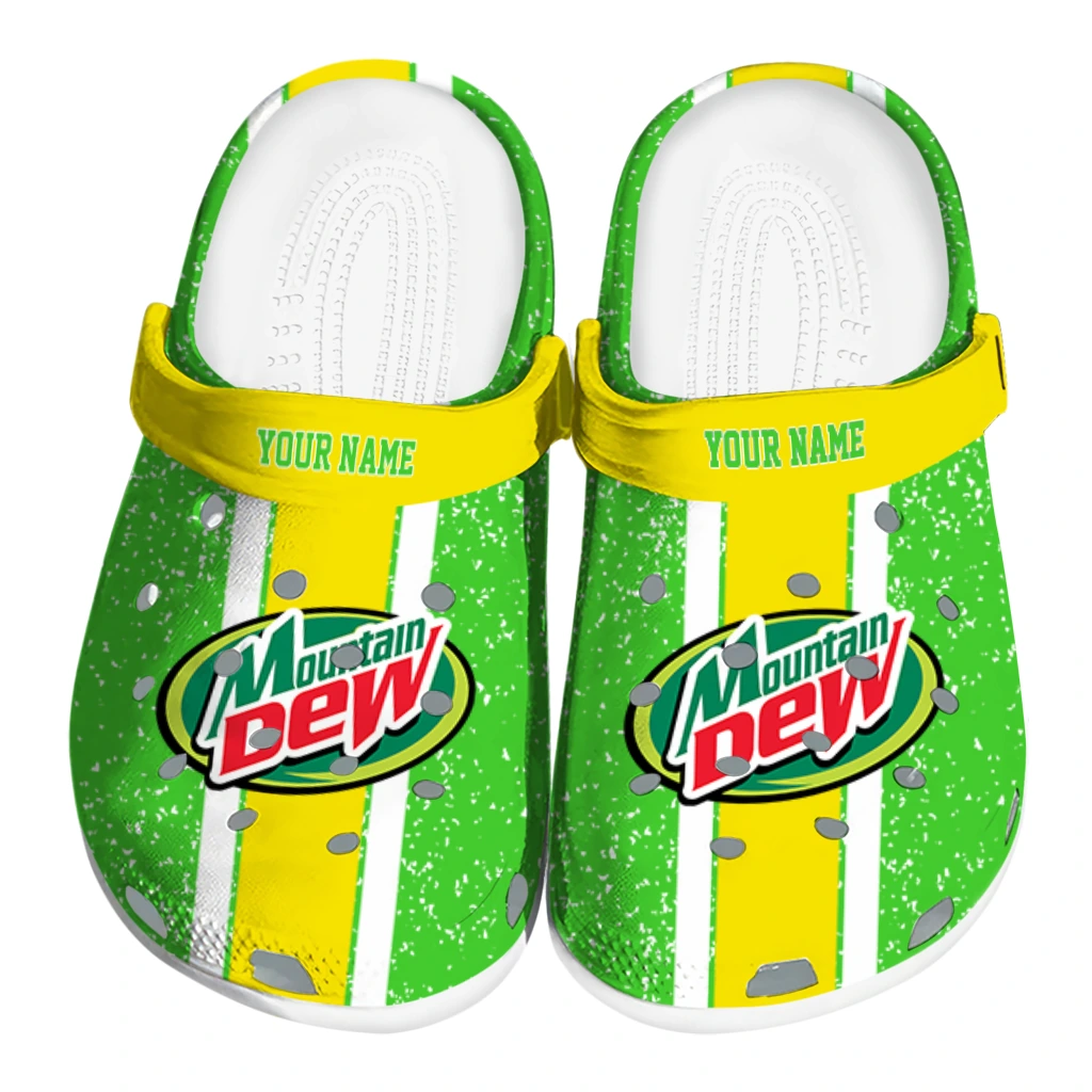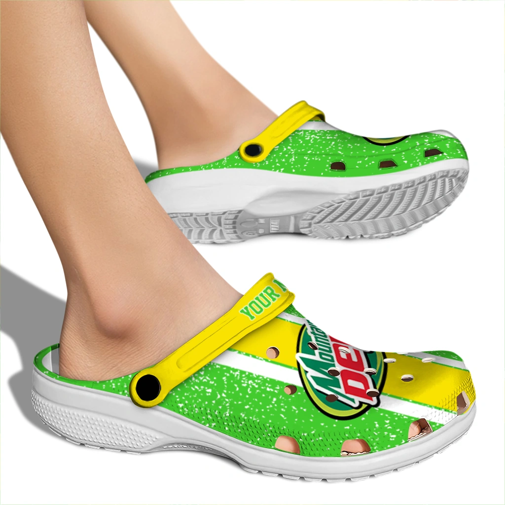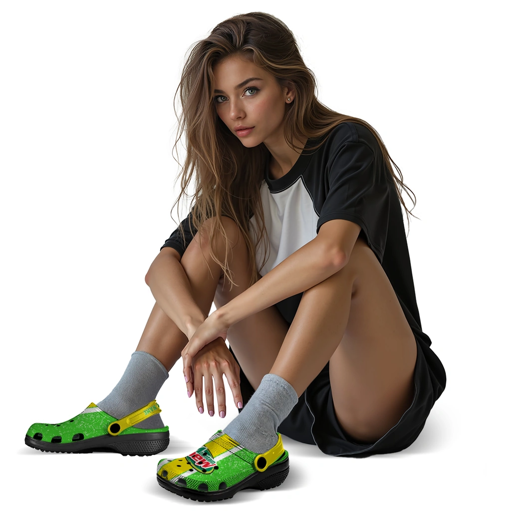 The Custom Mountain Dew Center Logo Green Yellow Clogs from Hey Clogs slips on in seconds and keeps pace with your day – from slow mornings at home to city strolls and weekend getaways. Thoughtful design meets playful style with cheerful colors and prints that pop, adding personality to every step while delivering easy, breezy comfort and lightweight support wherever you wander. Want a signature touch? Customize yours with a name or initials for a one-of-one pair.