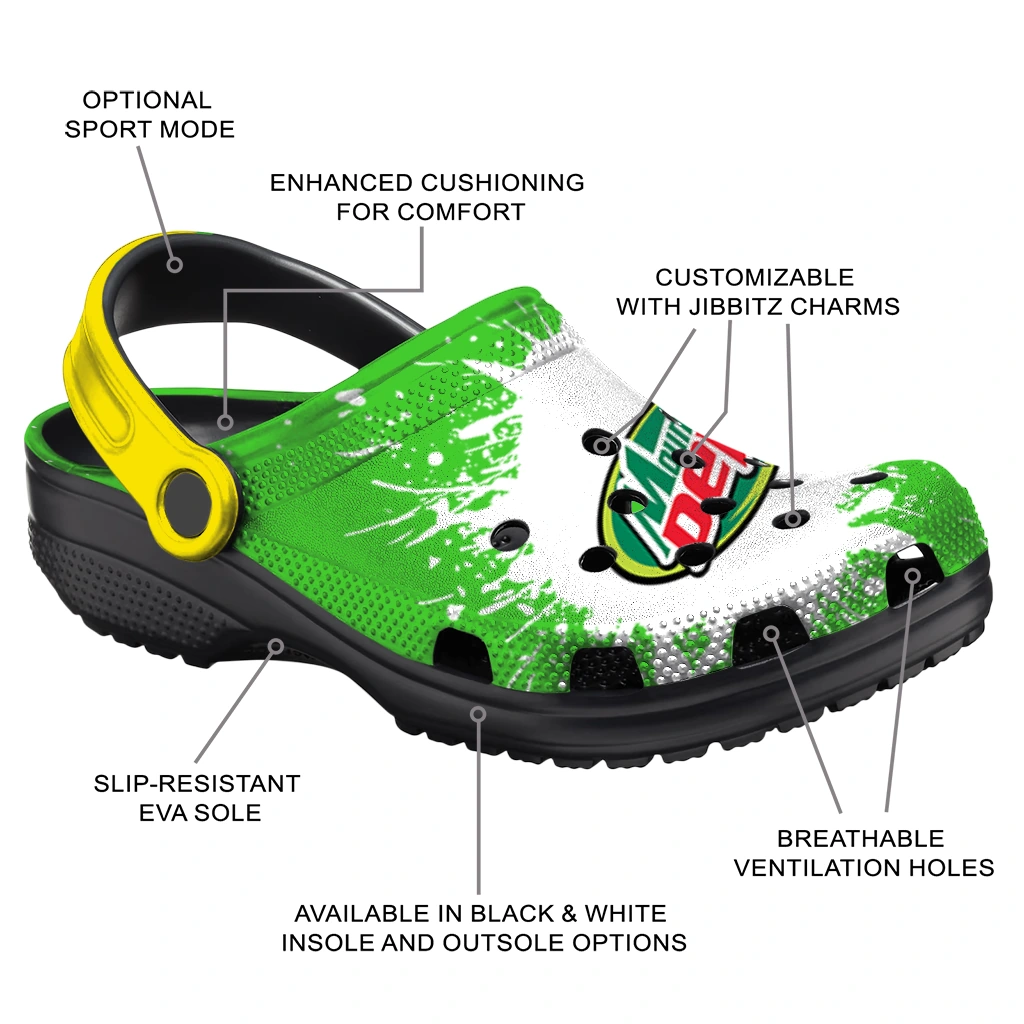 Custom Mountain Dew Splat Art Green Yellow Clogs
