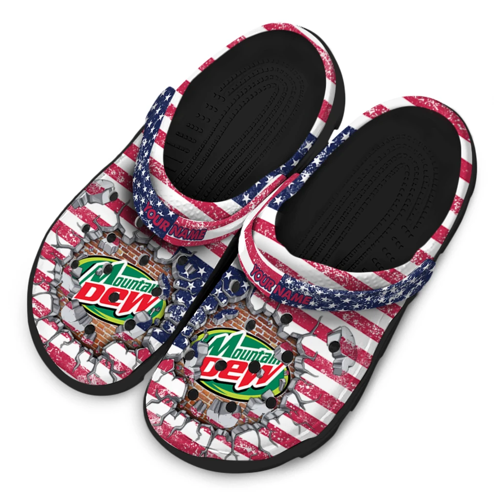 Custom Mountain Dew USA Centerpiece Red Blue Clogs
