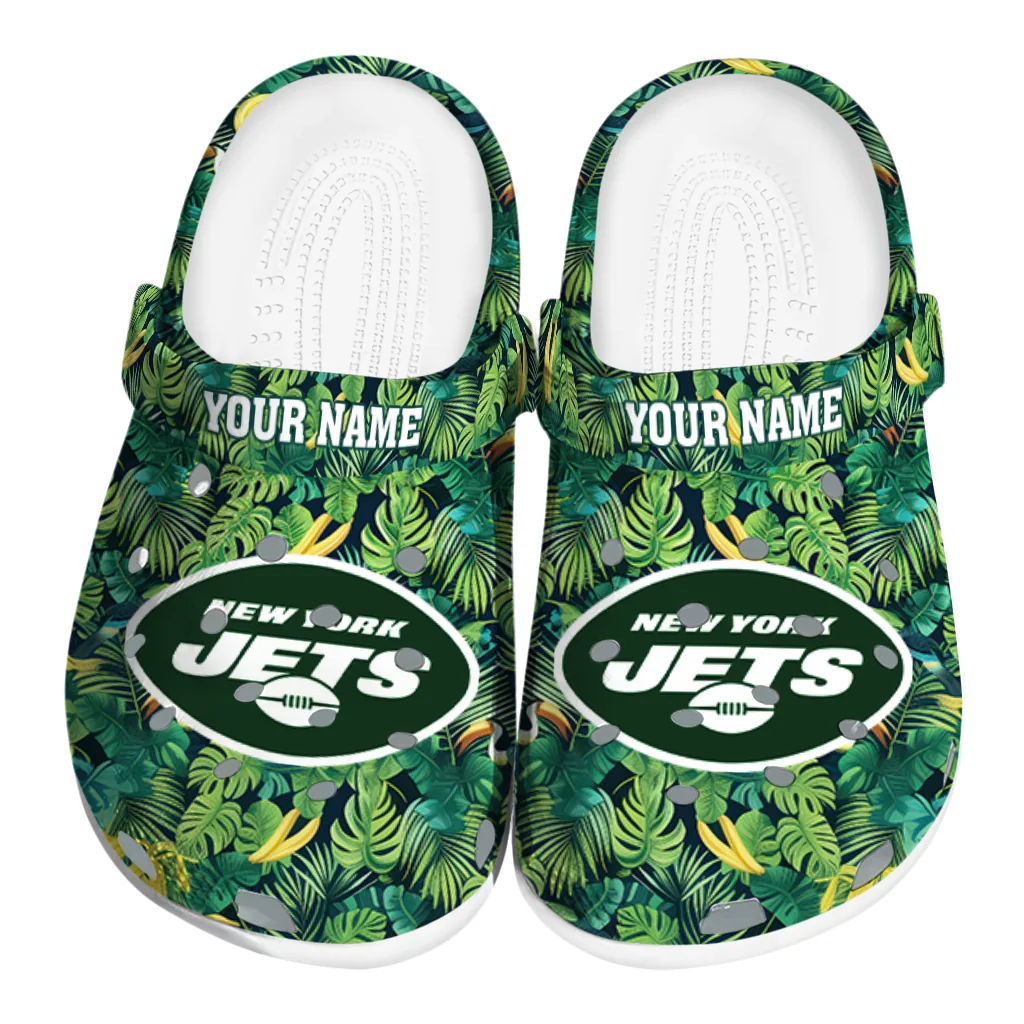 Custom New York Jets Tropical Leaves Clogs