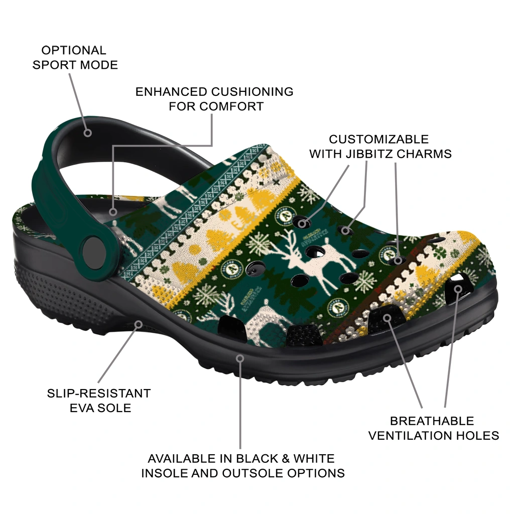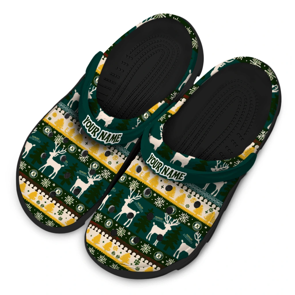 Your Clogs, Your Vibe, Your Name! Custom Oakland Athletics Christmas Motif Clogs from Hey Clogs lets you take sport team-inspired style to a personal level! Featuring the bold colors you love, these featherlight clogs deliver unbeatable, all-day comfort. What a great way to make them truly yours: add your name to the heel strap! Perfect for gifting or treating yourself, these personalized clogs are a fun, spirited way to step out in comfort.