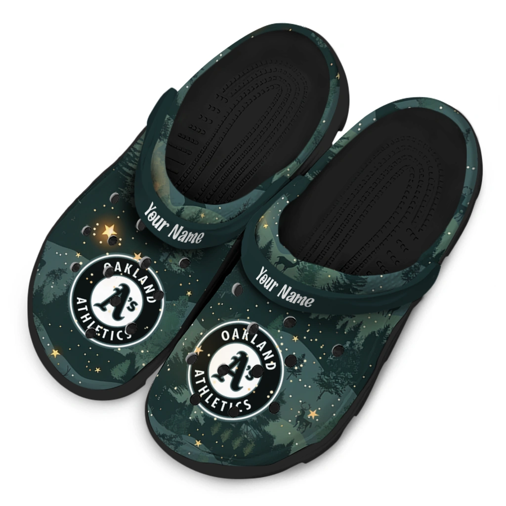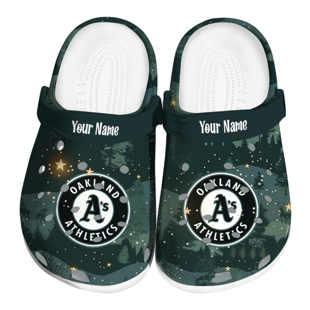 Your Clogs, Your Vibe, Your Name! Custom Oakland Athletics Deer Nightscape Clogs from Hey Clogs lets you take sport team-inspired style to a personal level! Featuring the bold colors you love, these featherlight clogs deliver unbeatable, all-day comfort. What a great way to make them truly yours: add your name to the heel strap! Perfect for gifting or treating yourself, these personalized clogs are a fun, spirited way to step out in comfort.