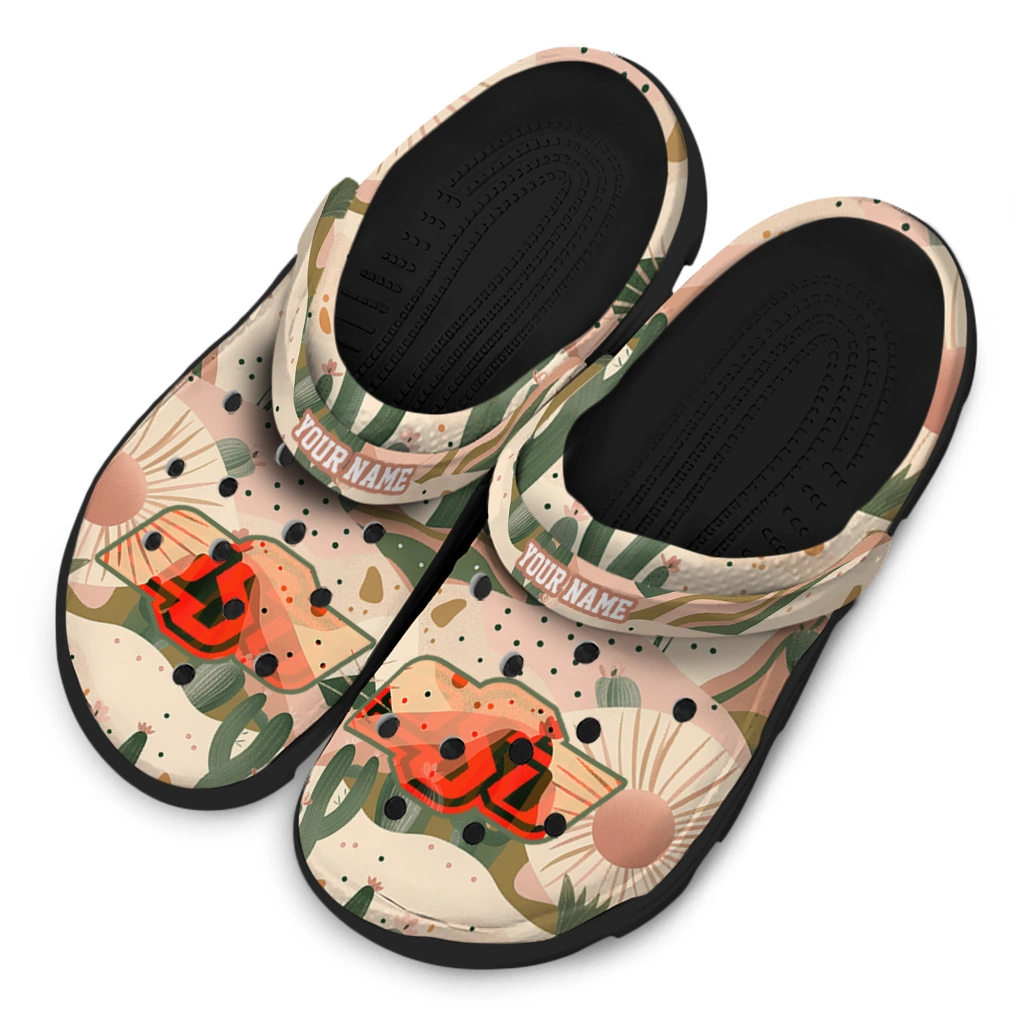Your Clogs, Your Vibe, Your Name! Custom Oklahoma State Cowboys Desert Cactus Pattern Clogs from Hey Clogs lets you take sport team-inspired style to a personal level! Featuring the bold colors you love, these featherlight clogs deliver unbeatable, all-day comfort. What a great way to make them truly yours: add your name to the heel strap! Perfect for gifting or treating yourself, these personalized clogs are a fun, spirited way to step out in comfort.