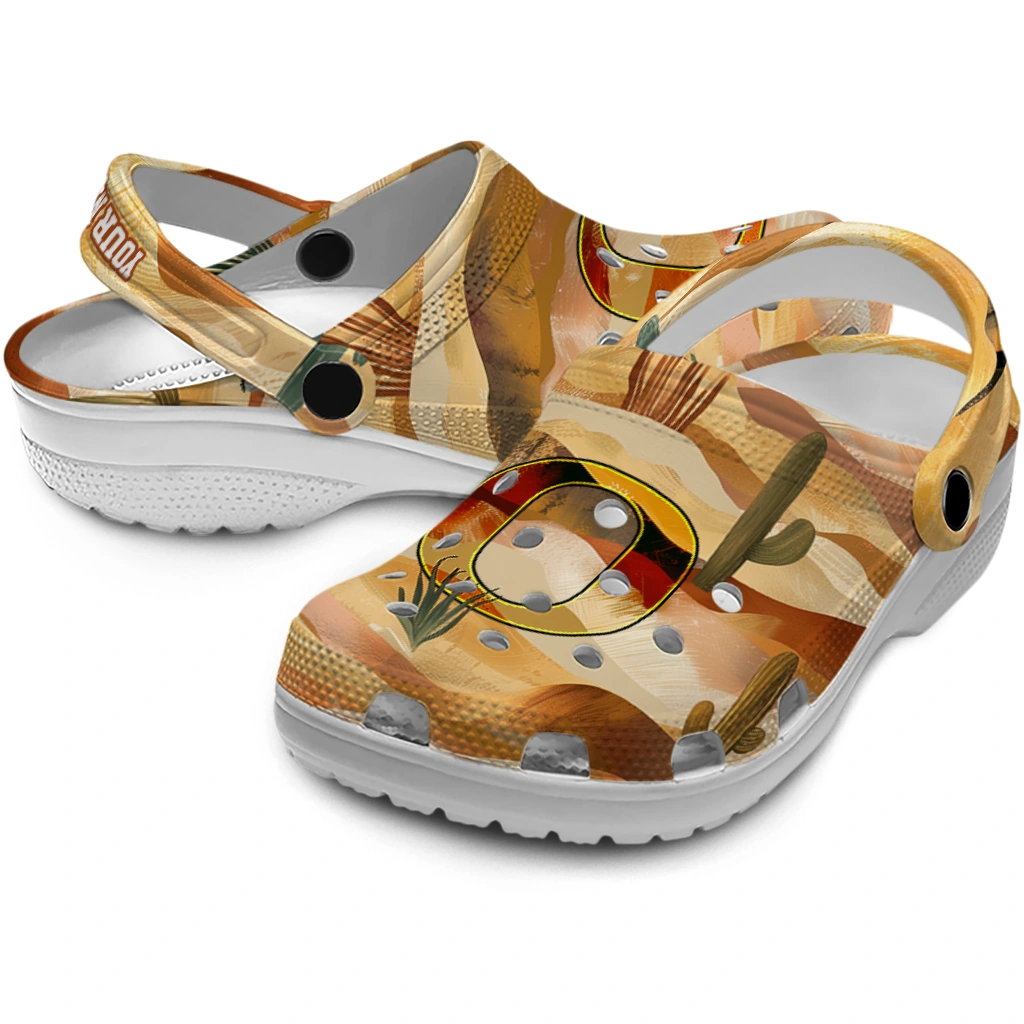 Your Clogs, Your Vibe, Your Name! Custom Oregon Ducks Desert Layers Clogs from Hey Clogs lets you take sport team-inspired style to a personal level! Featuring the bold colors you love, these featherlight clogs deliver unbeatable, all-day comfort. What a great way to make them truly yours: add your name to the heel strap! Perfect for gifting or treating yourself, these personalized clogs are a fun, spirited way to step out in comfort.