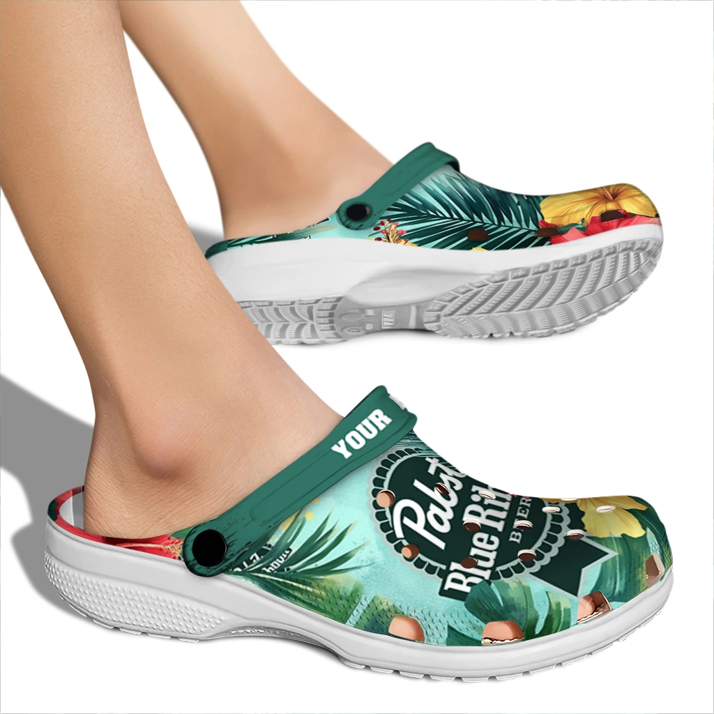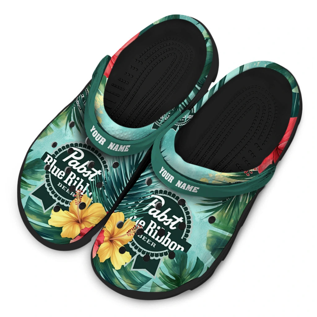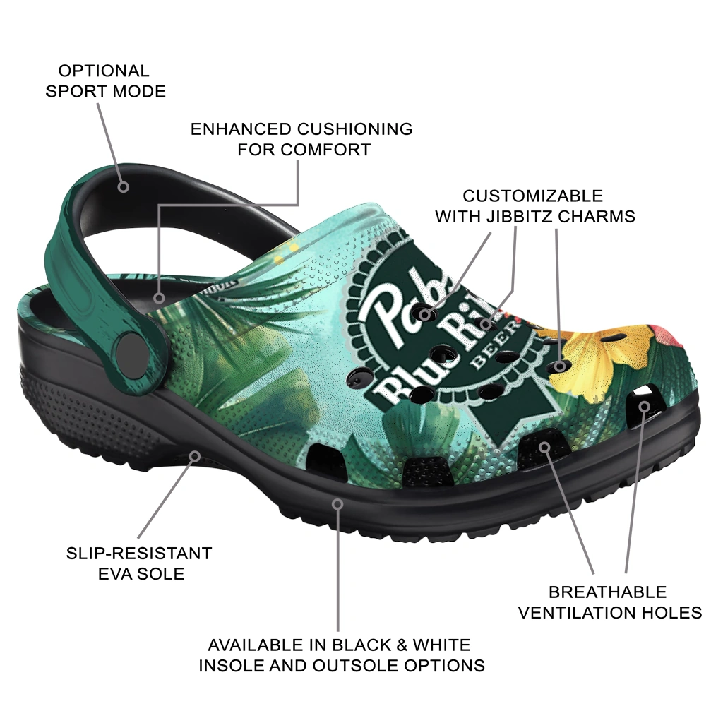 Custom Pabst Blue Ribbon Hawaii Green Red Clogs