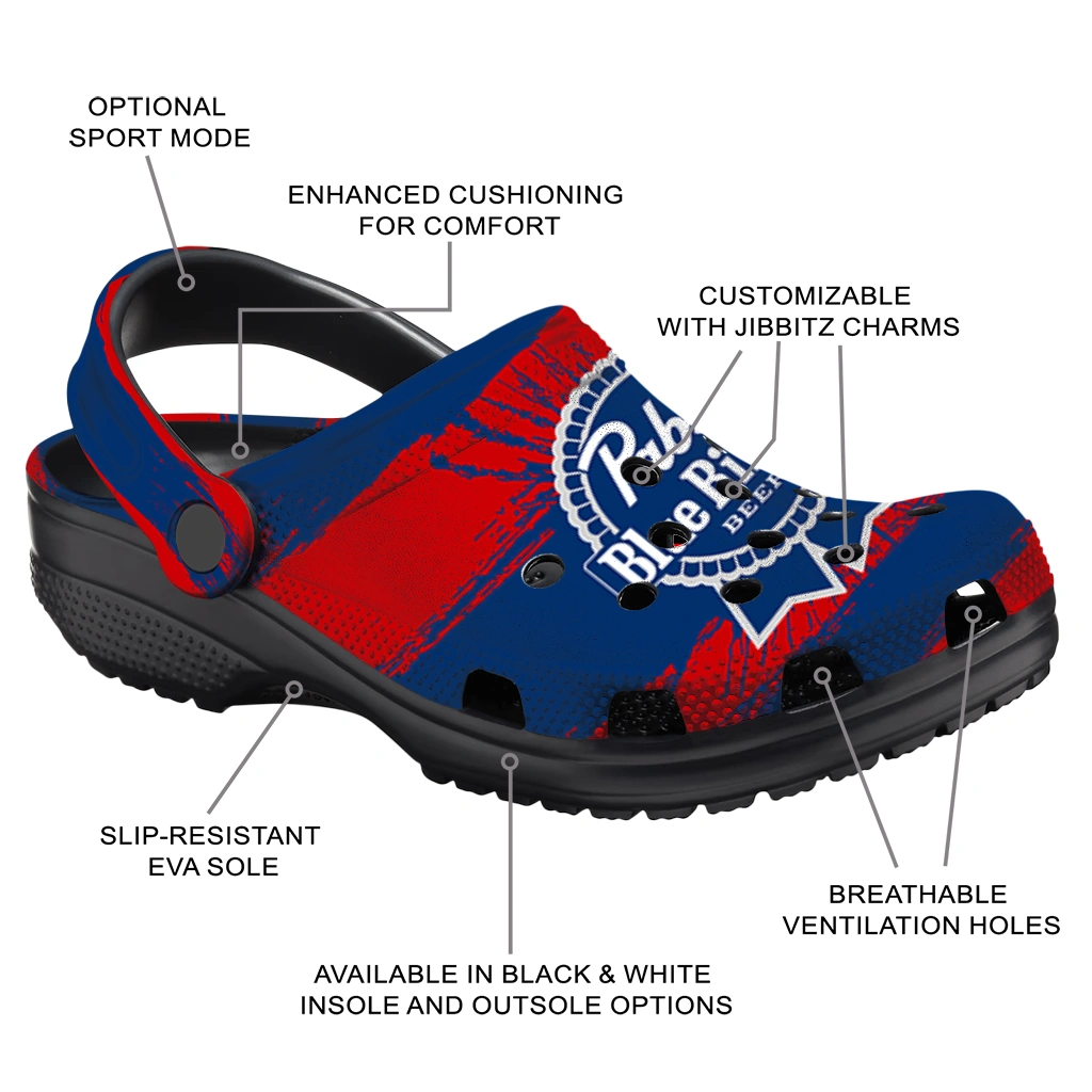 Custom Pabst Blue Ribbon Red Strikes Red Blue Clogs