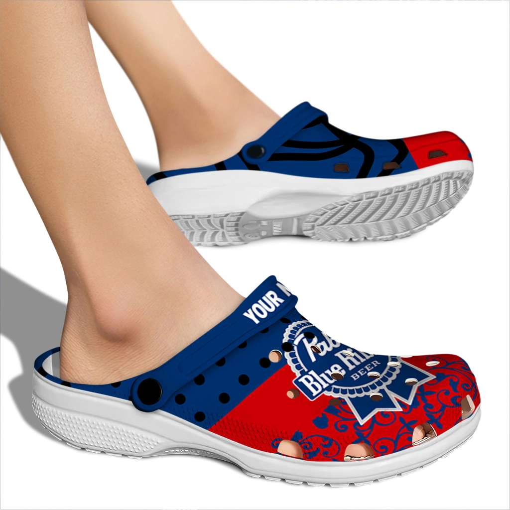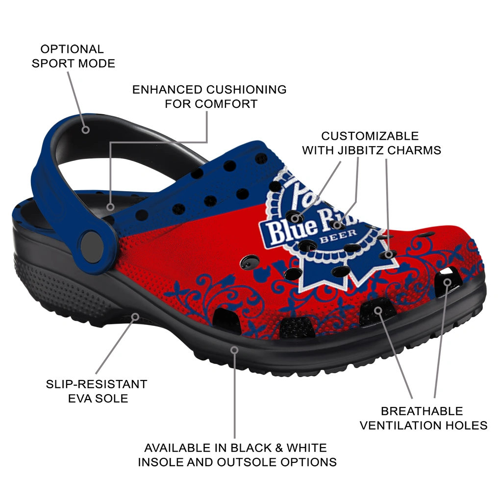 Custom Pabst Blue Ribbon Strike Designs Blue Red Clogs