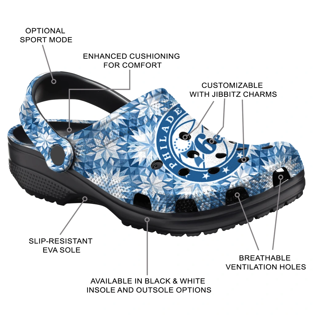 Custom Philadelphia 76ers Snowflake Mosaic Clogs