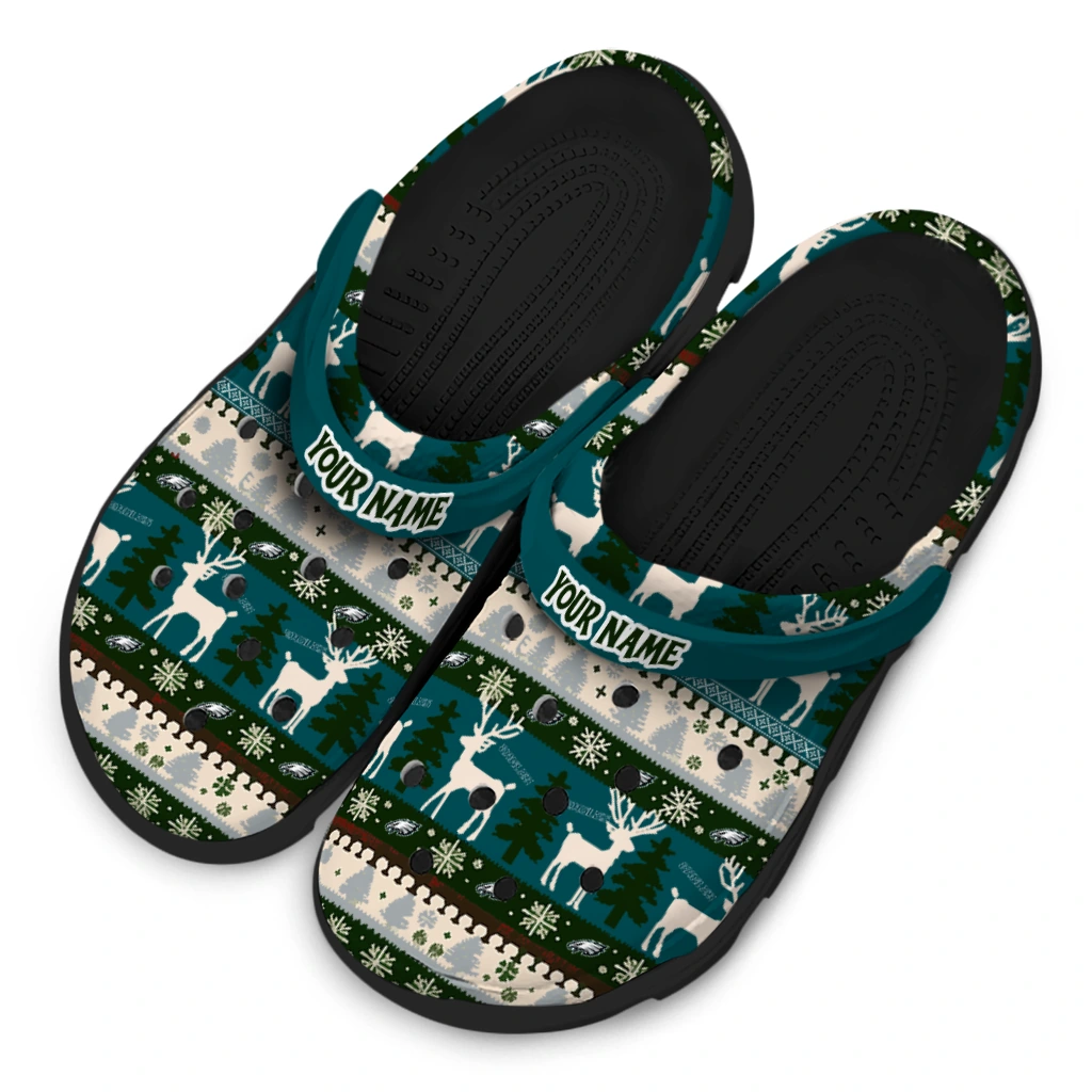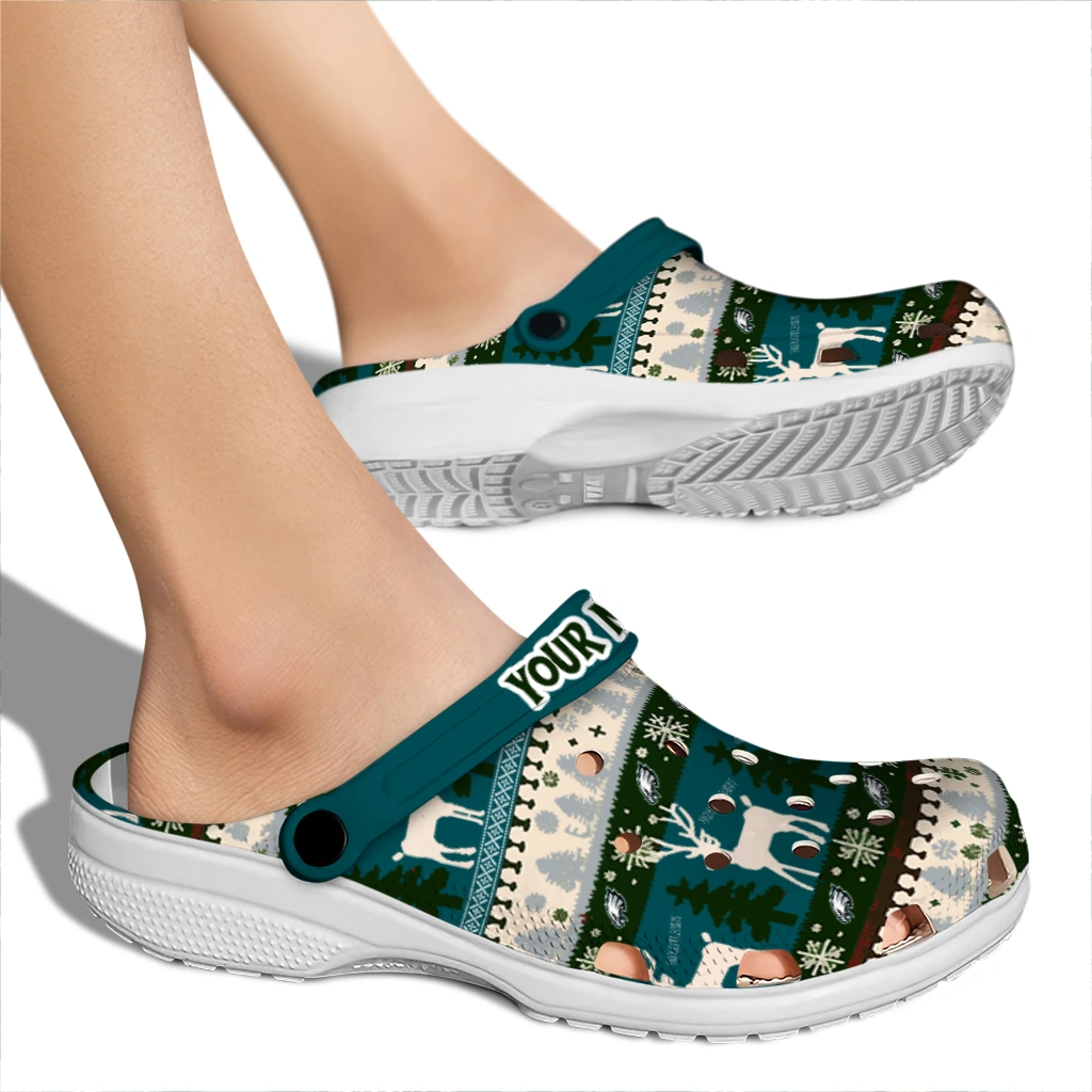 Your Clogs, Your Vibe, Your Name! Custom Philadelphia Eagles Christmas Motif Clogs from Hey Clogs lets you take sport team-inspired style to a personal level! Featuring the bold colors you love, these featherlight clogs deliver unbeatable, all-day comfort. What a great way to make them truly yours: add your name to the heel strap! Perfect for gifting or treating yourself, these personalized clogs are a fun, spirited way to step out in comfort.