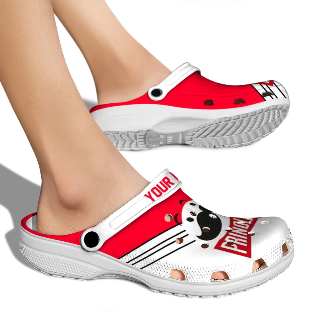 The Custom Pringles Happy Mascot Red White Clogs from Hey Clogs slips on in seconds and keeps pace with your day – from slow mornings at home to city strolls and weekend getaways. Thoughtful design meets playful style with cheerful colors and prints that pop, adding personality to every step while delivering easy, breezy comfort and lightweight support wherever you wander. Want a signature touch? Customize yours with a name or initials for a one-of-one pair.
