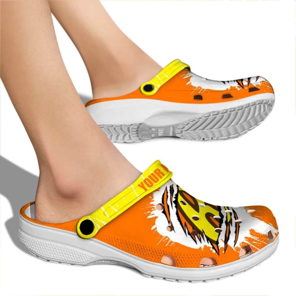 The Custom Reese’s Claw Orange Yellow Clogs from Hey Clogs slips on in seconds and keeps pace with your day – from slow mornings at home to city strolls and weekend getaways. Thoughtful design meets playful style with cheerful colors and prints that pop, adding personality to every step while delivering easy, breezy comfort and lightweight support wherever you wander. Want a signature touch? Customize yours with a name or initials for a one-of-one pair.