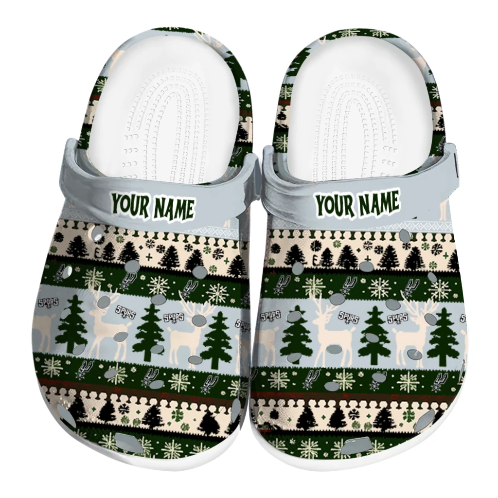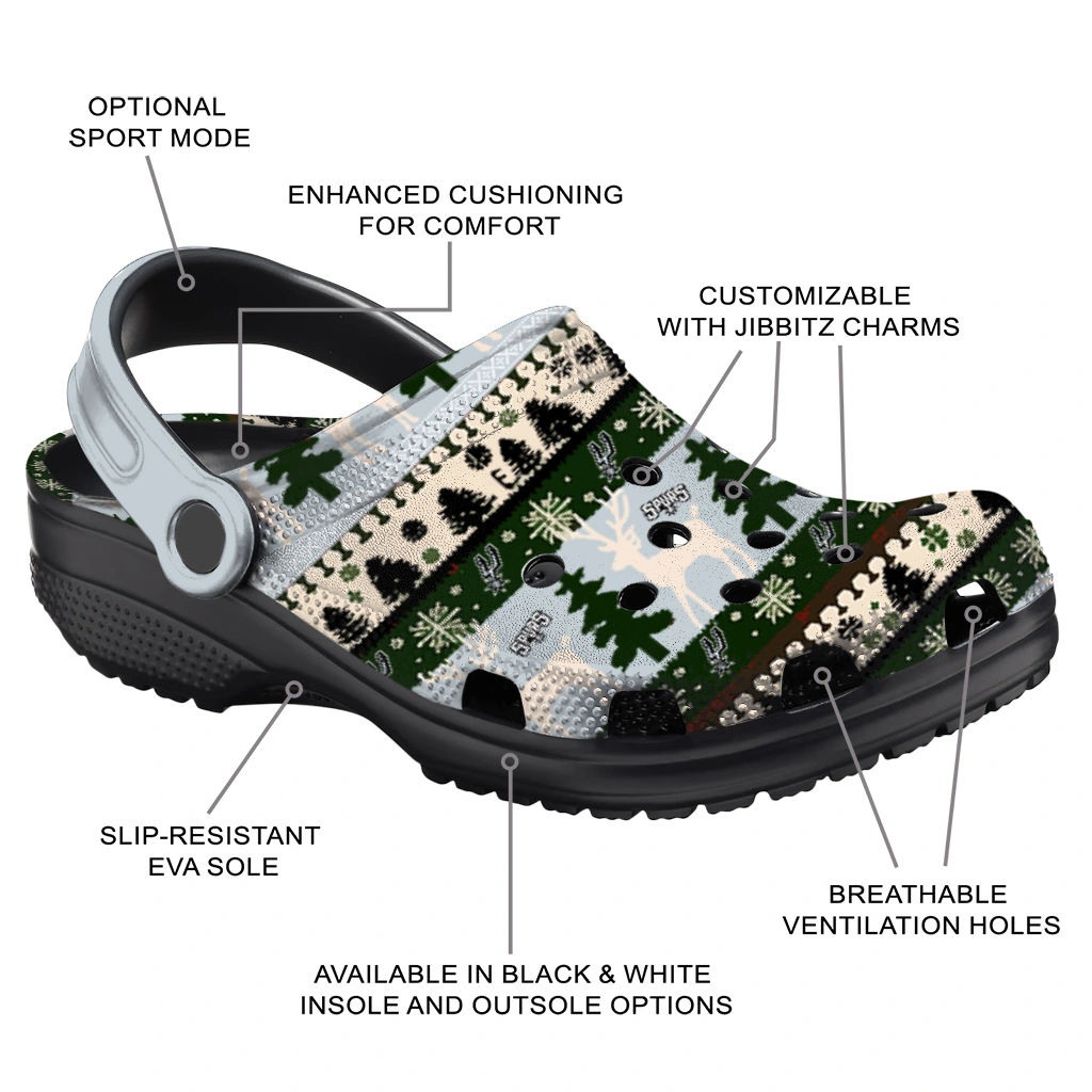 Your Clogs, Your Vibe, Your Name! Custom San Antonio Spurs Christmas Motif Clogs from Hey Clogs lets you take sport team-inspired style to a personal level! Featuring the bold colors you love, these featherlight clogs deliver unbeatable, all-day comfort. What a great way to make them truly yours: add your name to the heel strap! Perfect for gifting or treating yourself, these personalized clogs are a fun, spirited way to step out in comfort.