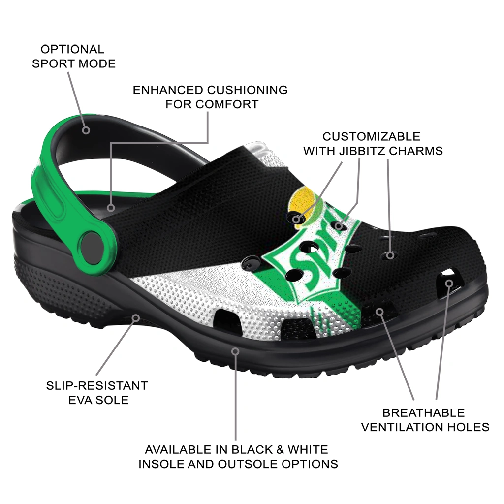 Custom Sprite Logo Black Green Clogs