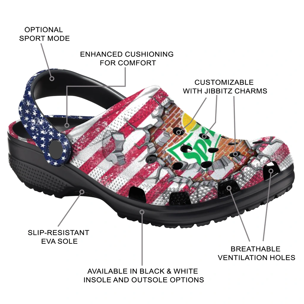 The Custom Sprite USA Explosion Red Blue Clogs from Hey Clogs slips on in seconds and keeps pace with your day – from slow mornings at home to city strolls and weekend getaways. Thoughtful design meets playful style with cheerful colors and prints that pop, adding personality to every step while delivering easy, breezy comfort and lightweight support wherever you wander. Want a signature touch? Customize yours with a name or initials for a one-of-one pair.