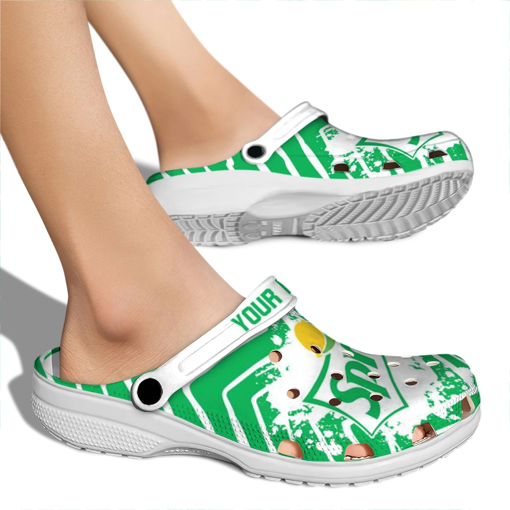 The Custom Sprite Zigzag Green White Clogs from Hey Clogs slips on in seconds and keeps pace with your day – from slow mornings at home to city strolls and weekend getaways. Thoughtful design meets playful style with cheerful colors and prints that pop, adding personality to every step while delivering easy, breezy comfort and lightweight support wherever you wander. Want a signature touch? Customize yours with a name or initials for a one-of-one pair.
