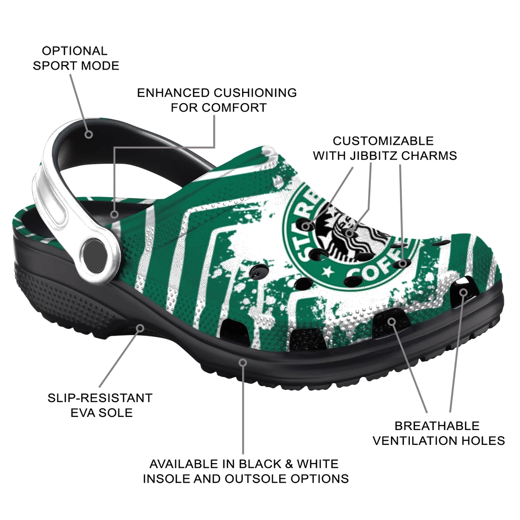 The Customized Starbucks Logo Green White Clogs from Hey Clogs slips on in seconds and keeps pace with your day – from slow mornings at home to city strolls and weekend getaways. Thoughtful design meets playful style with cheerful colors and prints that pop, adding personality to every step while delivering easy, breezy comfort and lightweight support wherever you wander. Want a signature touch? Customize yours with a name or initials for a one-of-one pair.