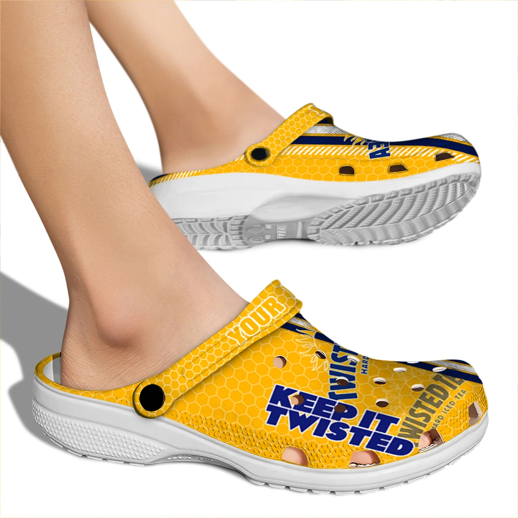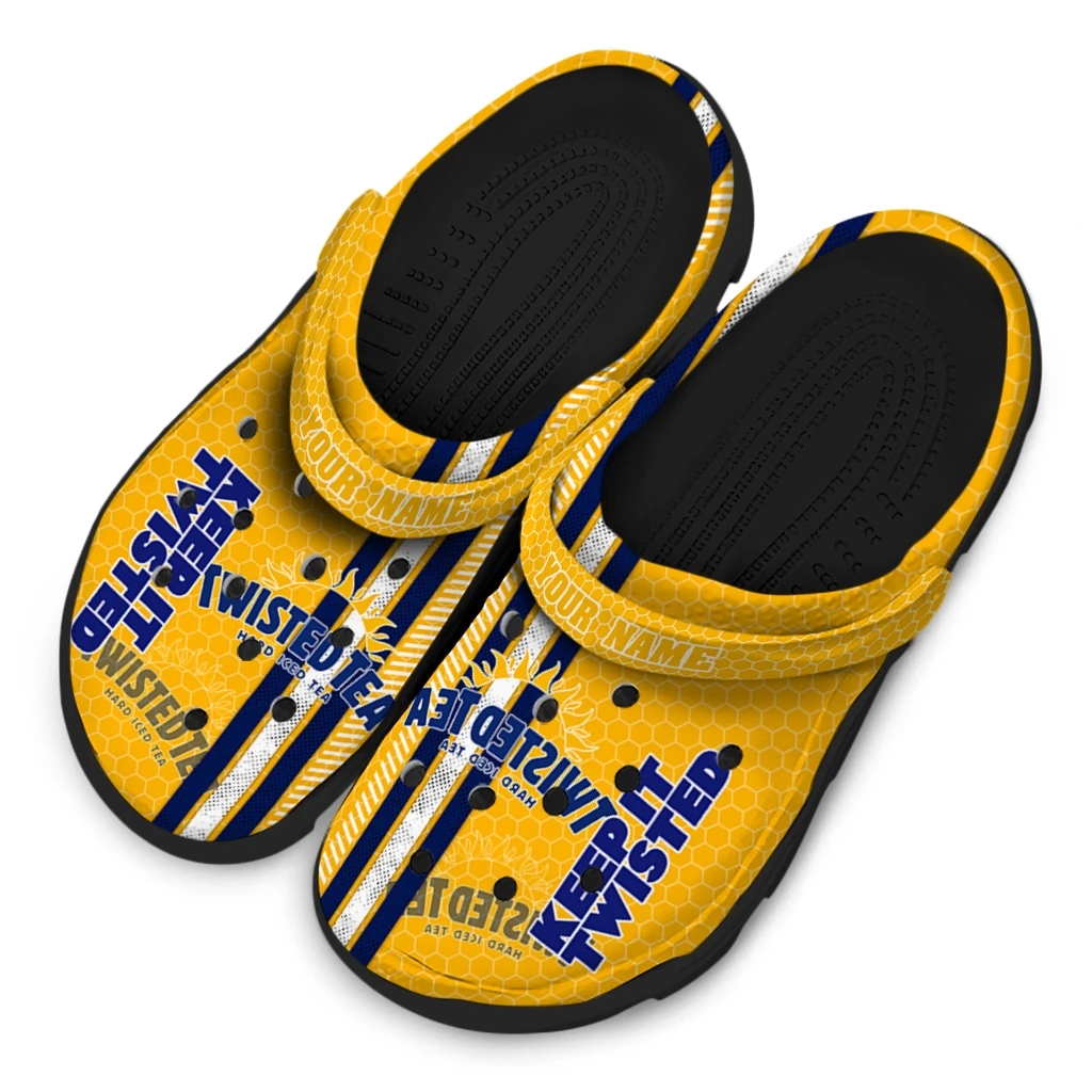 Custom Twisted Tea Bold Lettering Yellow Blue Clogs