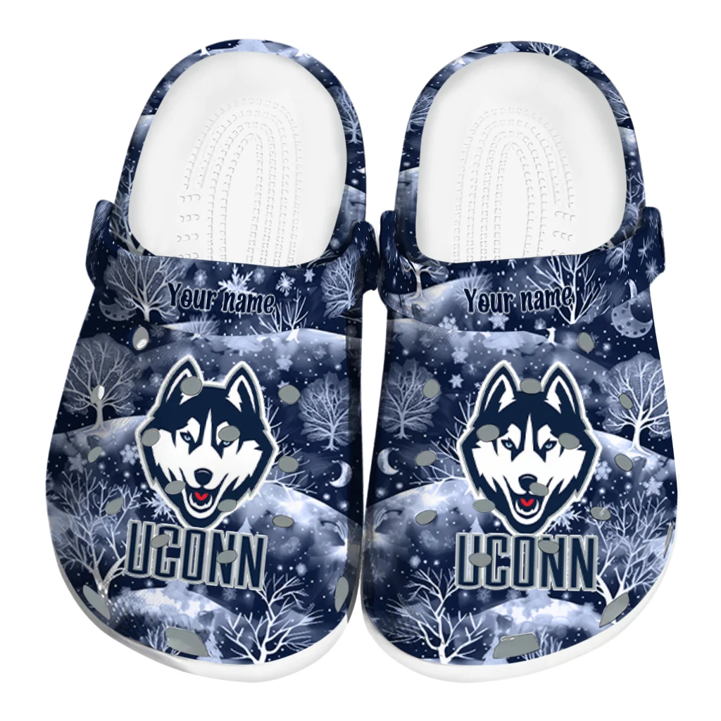 Your Clogs, Your Vibe, Your Name! Custom UConn Huskies Snowy Mountains Clogs from Hey Clogs lets you take sport team-inspired style to a personal level! Featuring the bold colors you love, these featherlight clogs deliver unbeatable, all-day comfort. What a great way to make them truly yours: add your name to the heel strap! Perfect for gifting or treating yourself, these personalized clogs are a fun, spirited way to step out in comfort.