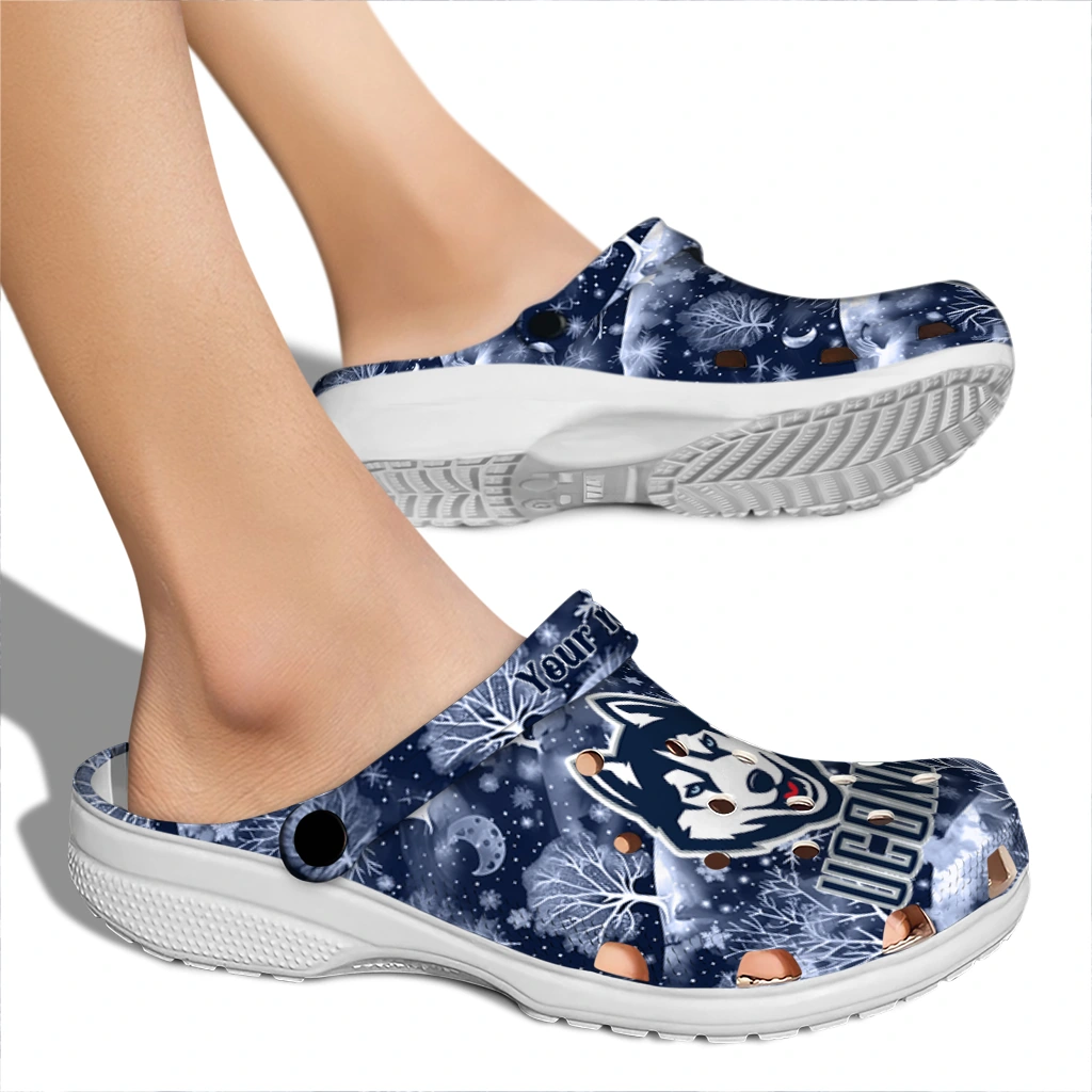 Your Clogs, Your Vibe, Your Name! Personalized UConn Huskies Snowflake Mosaic Clogs from Hey Clogs lets you take sport team-inspired style to a personal level! Featuring the bold colors you love, these featherlight clogs deliver unbeatable, all-day comfort. What a great way to make them truly yours: add your name to the heel strap! Perfect for gifting or treating yourself, these personalized clogs are a fun, spirited way to step out in comfort.