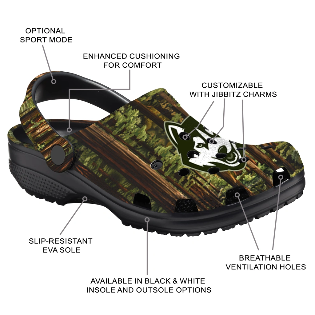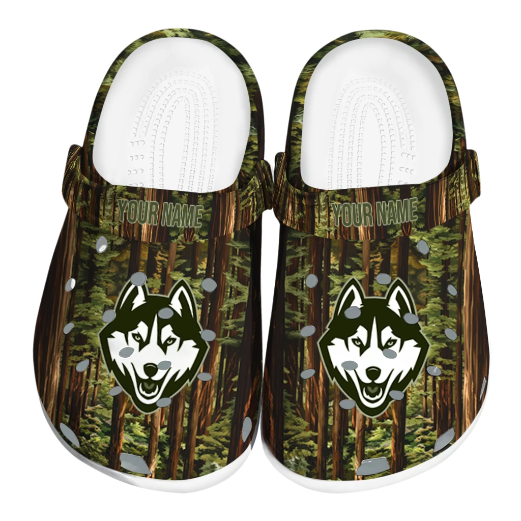 Your Clogs, Your Vibe, Your Name! Custom UConn Huskies Woods Forest Designs Clogs from Hey Clogs lets you take sport team-inspired style to a personal level! Featuring the bold colors you love, these featherlight clogs deliver unbeatable, all-day comfort. What a great way to make them truly yours: add your name to the heel strap! Perfect for gifting or treating yourself, these personalized clogs are a fun, spirited way to step out in comfort.