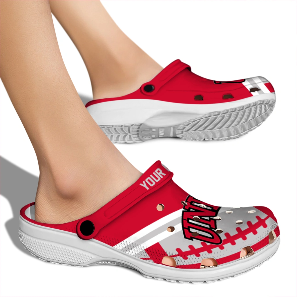 Your Clogs, Your Vibe, Your Name! Custom UNLV Rebels Football Motif Clogs from Hey Clogs lets you take sport team-inspired style to a personal level! Featuring the bold colors you love, these featherlight clogs deliver unbeatable, all-day comfort. What a great way to make them truly yours: add your name to the heel strap! Perfect for gifting or treating yourself, these personalized clogs are a fun, spirited way to step out in comfort.