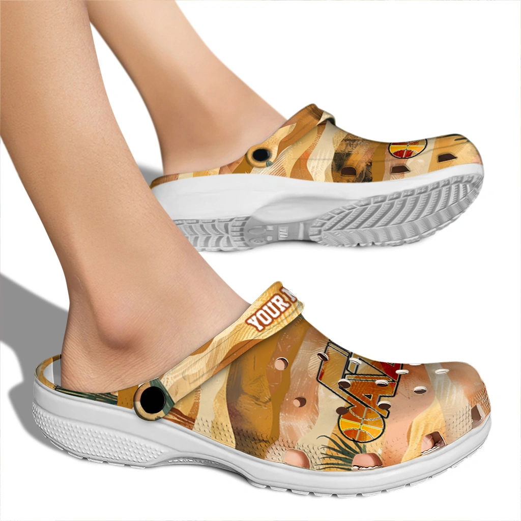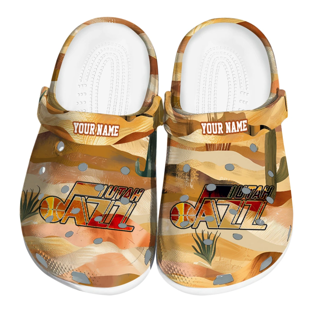 Your Clogs, Your Vibe, Your Name! Personalized Utah Jazz Desert Cactus Pattern Clogs from Hey Clogs lets you take sport team-inspired style to a personal level! Featuring the bold colors you love, these featherlight clogs deliver unbeatable, all-day comfort. What a great way to make them truly yours: add your name to the heel strap! Perfect for gifting or treating yourself, these personalized clogs are a fun, spirited way to step out in comfort.