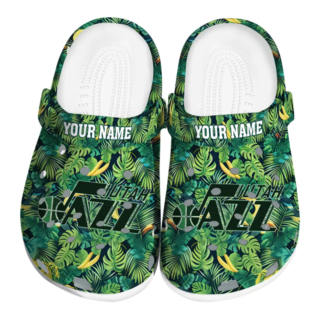 Your Clogs, Your Vibe, Your Name! Custom Utah Jazz Tropical Leaves Clogs from Hey Clogs lets you take sport team-inspired style to a personal level! Featuring the bold colors you love, these featherlight clogs deliver unbeatable, all-day comfort. What a great way to make them truly yours: add your name to the heel strap! Perfect for gifting or treating yourself, these personalized clogs are a fun, spirited way to step out in comfort.