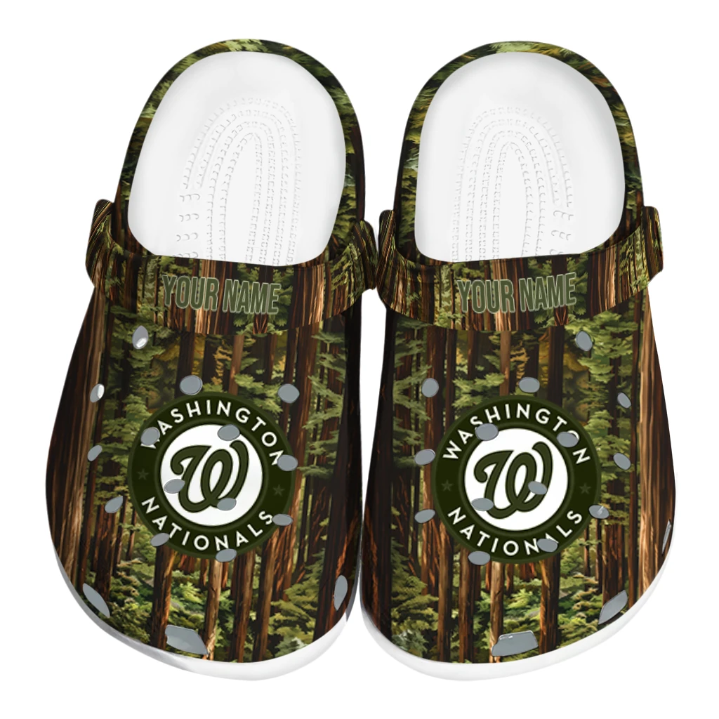 Your Clogs, Your Vibe, Your Name! Custom Washington Nationals Woods Forest Designs Clogs from Hey Clogs lets you take sport team-inspired style to a personal level! Featuring the bold colors you love, these featherlight clogs deliver unbeatable, all-day comfort. What a great way to make them truly yours: add your name to the heel strap! Perfect for gifting or treating yourself, these personalized clogs are a fun, spirited way to step out in comfort.