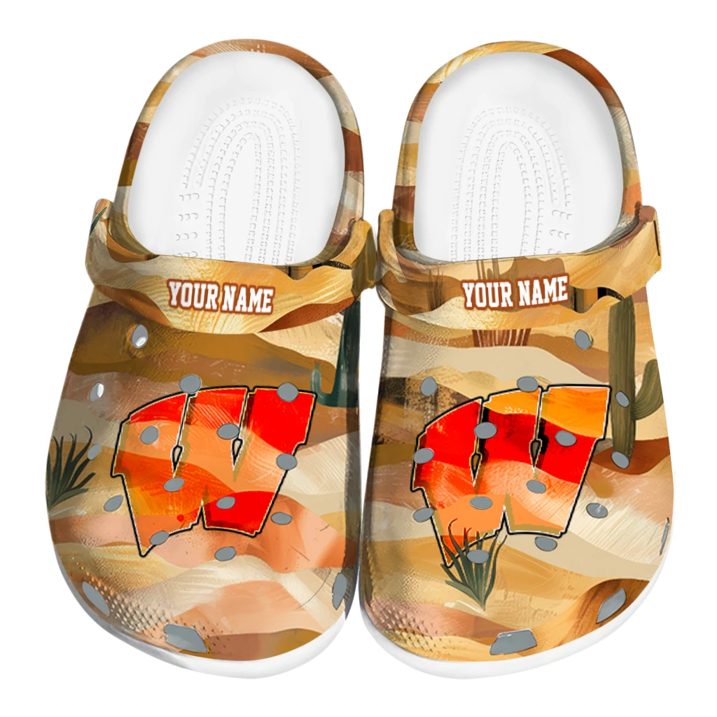 Your Clogs, Your Vibe, Your Name! Personalized Wisconsin Badgers Desert Cactus Pattern Clogs from Hey Clogs lets you take sport team-inspired style to a personal level! Featuring the bold colors you love, these featherlight clogs deliver unbeatable, all-day comfort. What a great way to make them truly yours: add your name to the heel strap! Perfect for gifting or treating yourself, these personalized clogs are a fun, spirited way to step out in comfort.