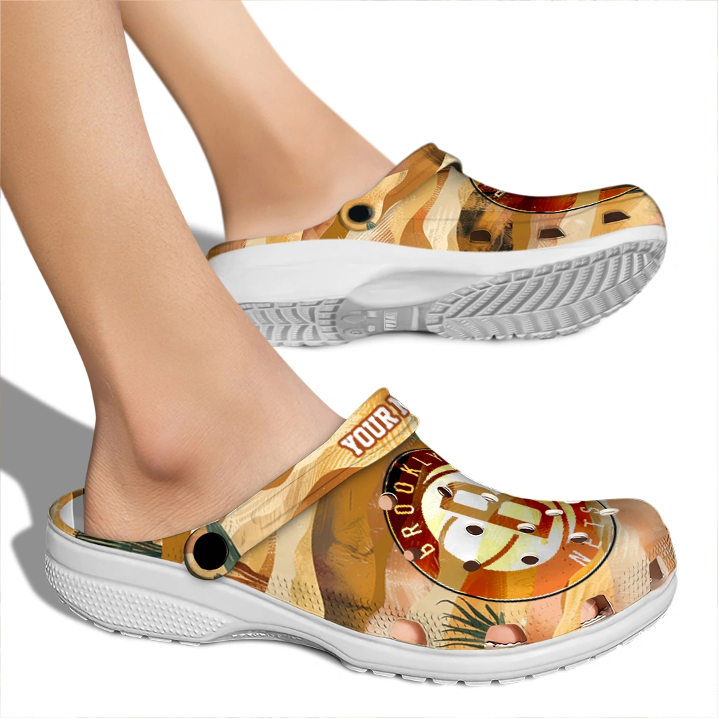 Your Clogs, Your Vibe, Your Name! Customized Brooklyn Nets Tropical Leaves Clogs from Hey Clogs lets you take sport team-inspired style to a personal level! Featuring the bold colors you love, these featherlight clogs deliver unbeatable, all-day comfort. What a great way to make them truly yours: add your name to the heel strap! Perfect for gifting or treating yourself, these personalized clogs are a fun, spirited way to step out in comfort.